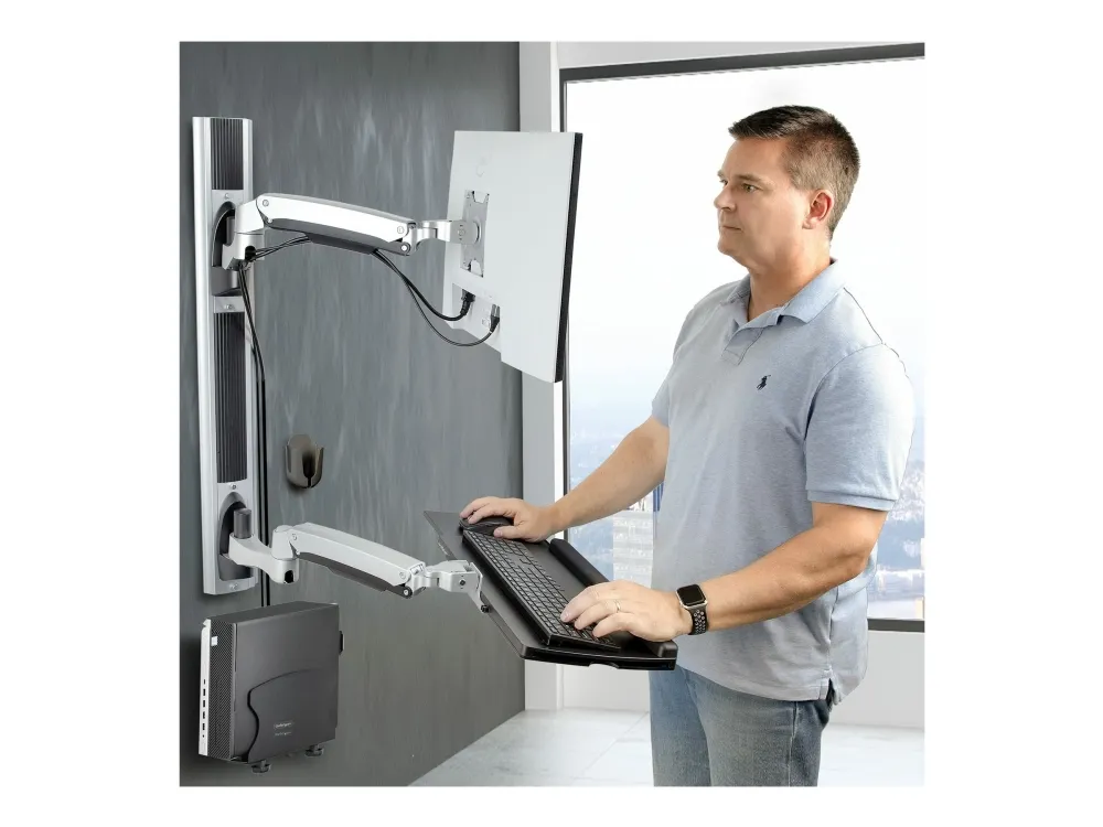 StarTech.com Wall Mount Workstation, VESA Mount For 32" Monitors (22lb/10kg), Fully Articulating Arms For Single Monitor Mount & Keyboard Tray, Includes Desktop Computer/PC Bracket - Ergonomic Standing Desk (2PASTSC-WALL-MOUNT) - Monteringssett - arbeidsstasjon - for flatpanel - aluminium, stål - svart - skjermstørrelse: up to 27" / 32" (ultra-wide) - veggmonterbar - TAA-samsvar