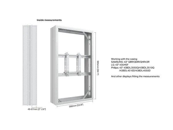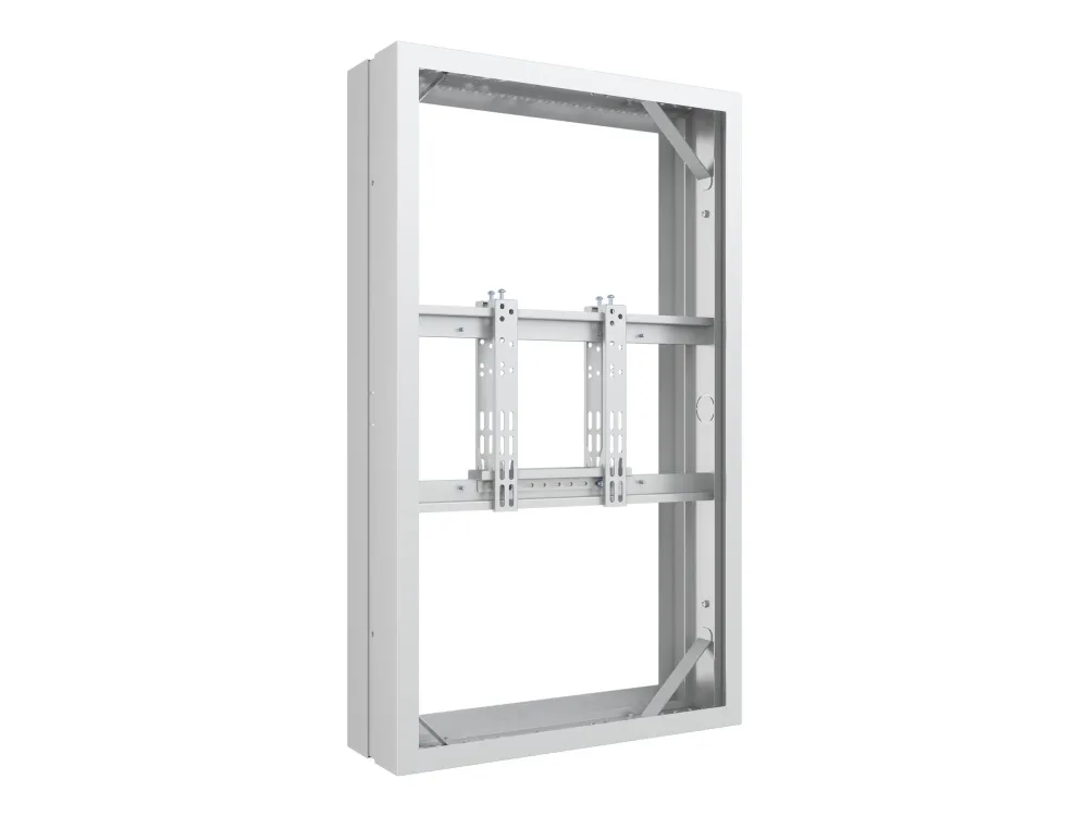 The Multibrackets M Pro Series Enclosure is designed to support two LCD displays with a maximum load weight of 50 kg. Crafted from durable steel, this medium-sized AV furniture offers a vented design to promote optimal air circulation, keeping your equipment cool. With its powder-coated finish, this enclosure provides stability and complements any professional setting, suitable for various business environments. The standard flat panel mount interfaces of 200 x 200 mm and 400 x 400 mm ensure compatibility with a range of displays up to 43 inches.
