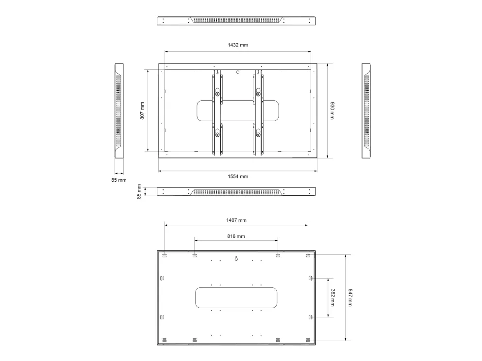 The Multibrackets M Pro Series enclosure provides a sturdy and efficient solution for digital signage displays. Constructed from durable steel, this enclosure is designed to hold displays of up to 65 inches (165.1 cm) while accommodating a maximum load weight of 30 kg. It is ideal for indoor use and specifically crafted for landscape orientation, making it a versatile choice for various applications. This enclosure is wall-mountable, offering flexible installation options to suit different environments. With a powder-coated finish, it looks professional and ensures long-lasting durability. Compliant with TUV standards, the enclosure provides safe and reliable performance, catering effectively to the demands of modern digital signage solutions.