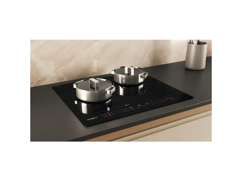 4 induction rings. FlexiCook zone allows you to combine multiple burners creating one large cooking zone for larger pans and dishes. Intuitive slider, for effortless control of your appliance settings. This Whirlpool induction glass-ceramic Hob features: An elegant technology, that heats the pan, not the hob, reducing energy dispersion and providing perfect cooking results. Electric power supply.