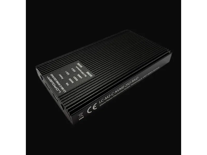The LC Power LC-M2-C-NVME-2X2-RAID storage enclosure offers a reliable solution for expanding storage with its dual internal M.2 slots supporting various form factors including 2230, 2242, 2260, and 2280. This efficient design is constructed from aluminum alloy, ensuring durability while providing effective heat dissipation. With support for RAID 0 and RAID 1 configurations, it allows users to optimize performance or redundancy based on their storage needs. Equipped with a USB 3.2 (Gen 2x2) interface, this storage enclosure delivers data transfer rates of up to 20 Gbit/s, making file transfers swift. The Plug-and-Play compatibility simplifies the setup process, allowing users to quickly expand their storage without hassle. Whether for personal projects or professional applications, the LC Power LC-M2-C-NVME-2X2-RAID is designed to meet diverse storage requirements.