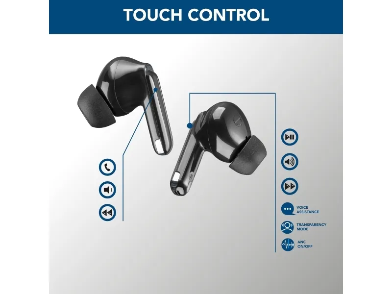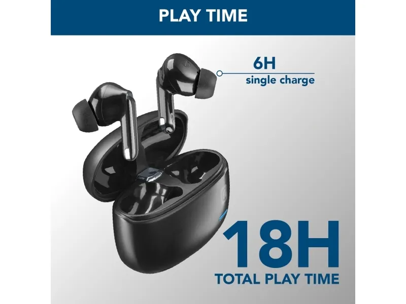 ECLIPSE is the in-ear headset with Active Noise Cancelling and Noise-Free Calls. Active Noise Cancelling enables immersive listening, isolating you from ambient noise and sounds. Noise-Free Calls guarantees crystal-clear voice in every call, as the microphones detect noise that disturbs your voice and eliminate it. ECLIPSE has a total play time of 18 hours.Cellularline ECLIPSE Wireless earphones with charging case and ANC and ENC technology. Product type: Headset. Connectivity technology: True Wireless Stereo (TWS), Bluetooth. Recommended usage: Calls/Music. Wireless range: 10 m. Cable length: 0.15 m. Weight: 145 g. Product colour: Black