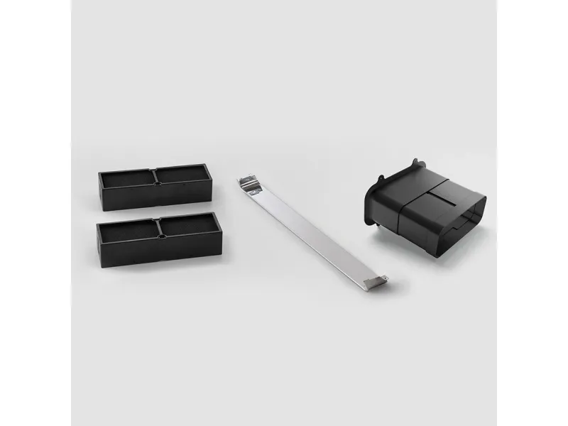 This kit allows the product to be converted into filtering mode. The air flow is conveyed backwards and left to flow, in the simplest possible way, into the interspace between the wall and the cabinet without the use of any additional pipes.Elica KIT0180522. Type: Cooker hood filter, Product colour: Black, Exhaust connection diameter (min): 13.7 cm. Brand compatibility: Elica. Quantity per pack: 2 pc(s)