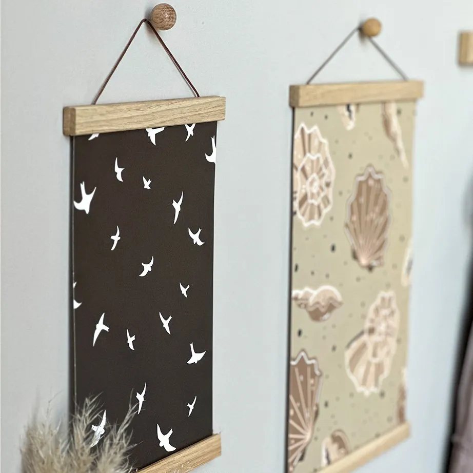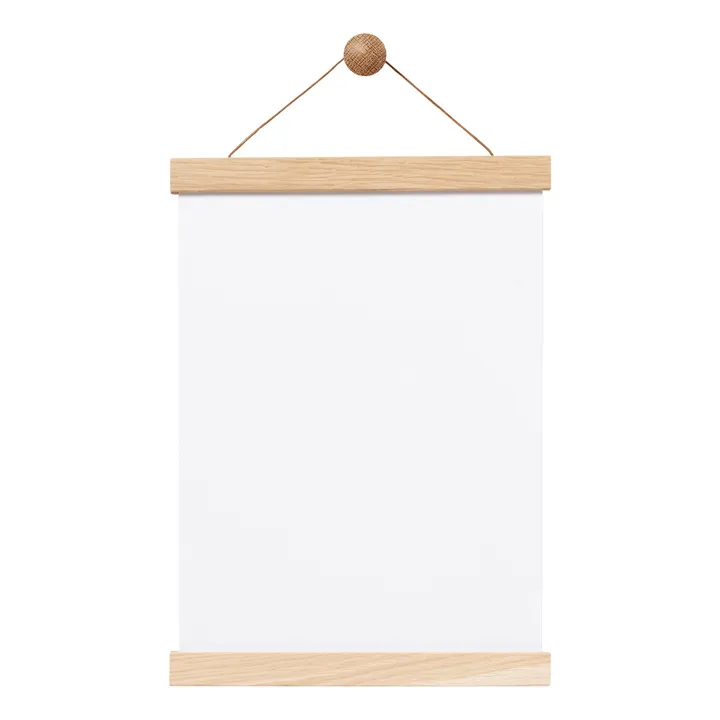 Magnet rammeskinne sæt i natur egetræ, længde 22 cm. Sættet består af 2 skinner, med indbyggede magneter, så man nemt kan hænge plakater, tegninger, billeder m.v. op. Sæt plakaten ind mellem de 2 skinner, og luk skinnerne sammen, enkelt og let. Magneterne sikrer, at plakaten sidder godt fast, men er nem at udskifte.