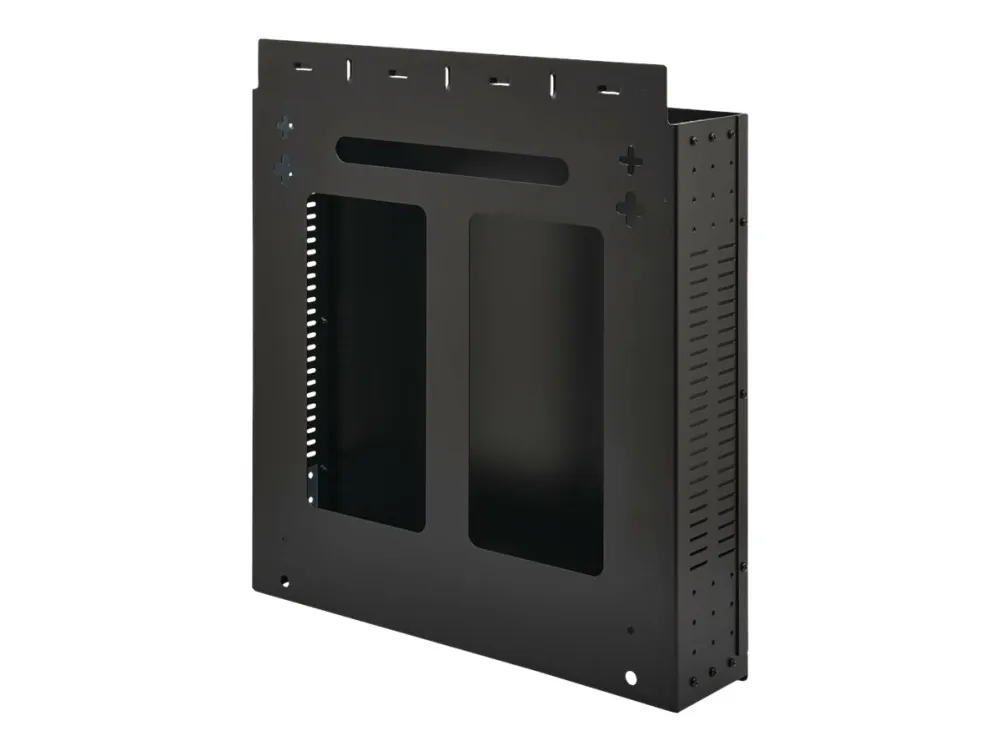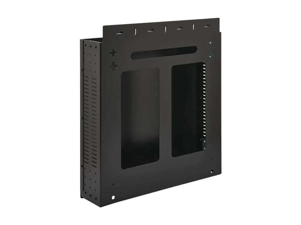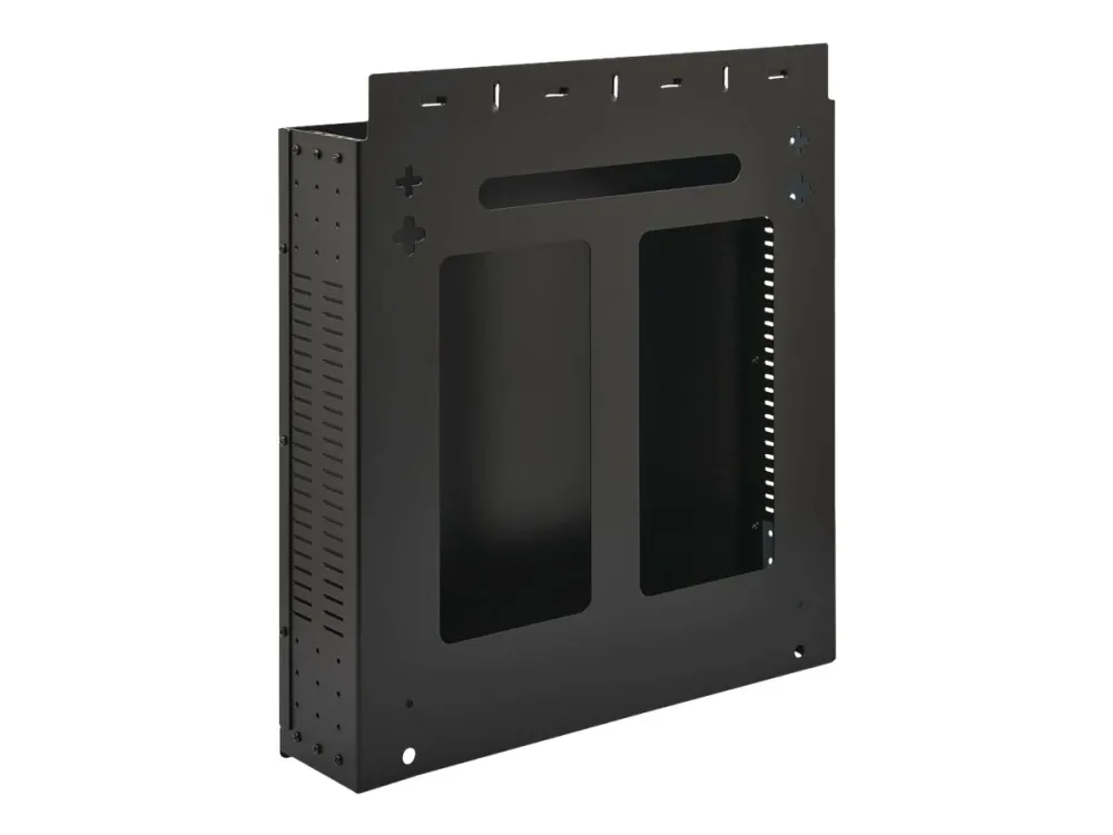 This SmartRack cabinet is recommended for wiring closets, retail locations, classrooms, back offices and other confined spaces where you need server or network equipment to be organized and out of the way. Made from heavy-duty cold-rolled steel with a durable black powder-coated finish, the vertical-mount SRWO2UBRKT has a maximum load capacity of 75 pounds (34 kilograms).