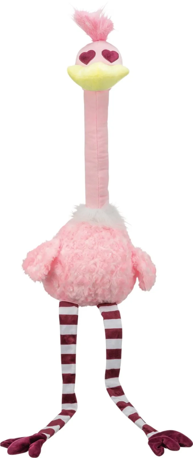 Valentins struds i plys er et sjovt og kærligt plyslegetøj perfekt til Valentinsdag eller på en anden særlig dag. Dette plyslegetøj er formet som en struds og er lavet af blødt materiale, der giver din hund noget at kramme og lege med.