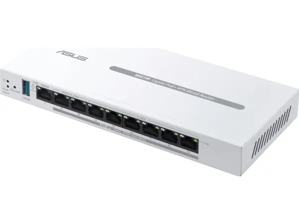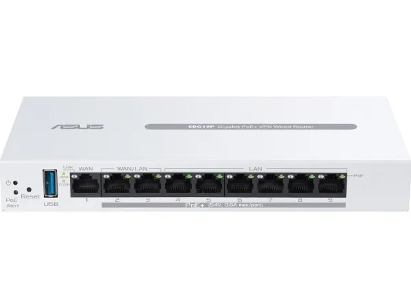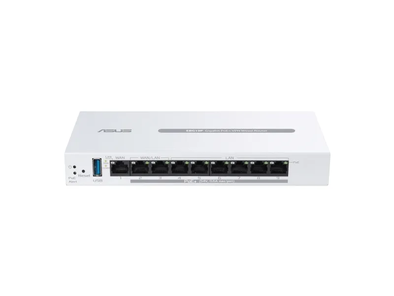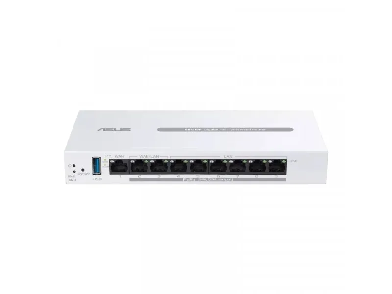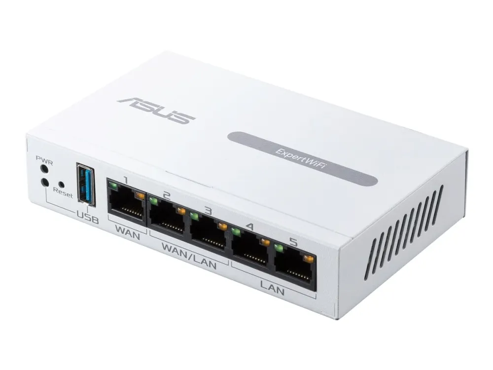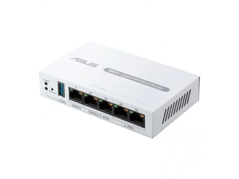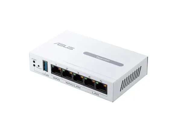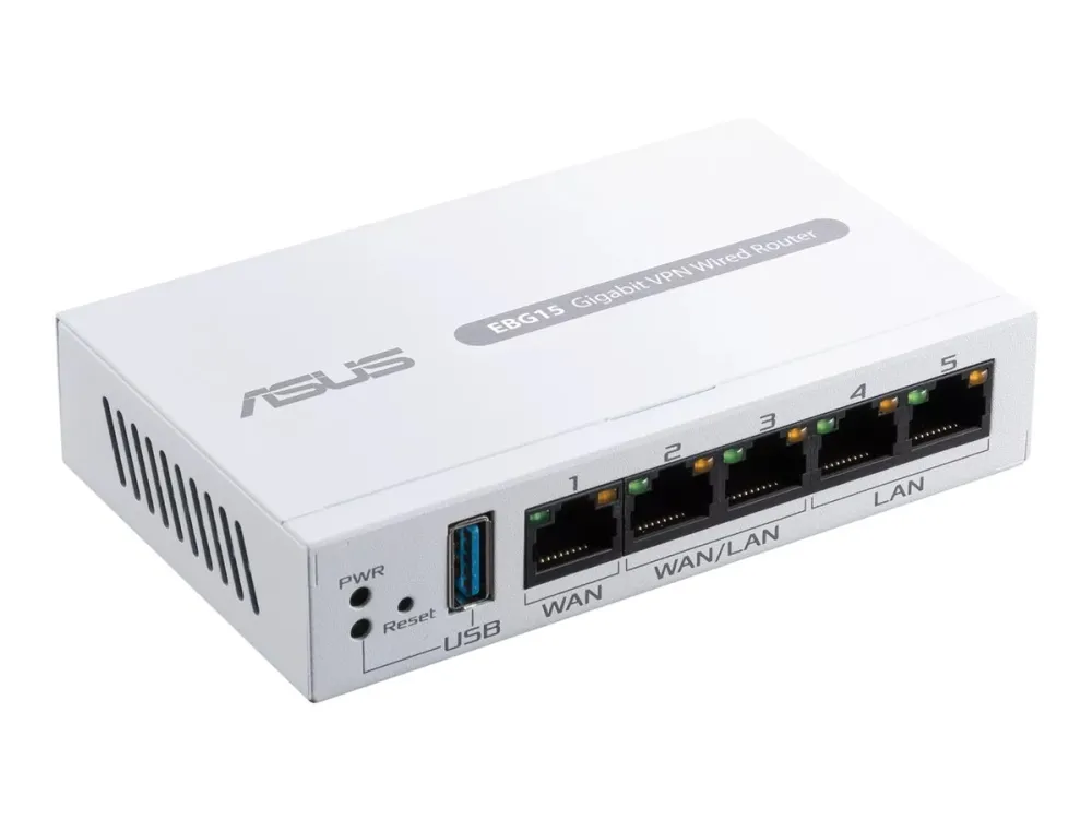 The ASUS ExpertWiFi EBG15 is a router designed to meet the connectivity needs of both home and office environments. With its three WAN ports and integrated 4-port switch, this router offers flexible connection options, making it an ideal choice for a variety of networking setups. Security is a priority for the ASUS ExpertWiFi EBG15, featuring ASUS AiProtection Pro, VPN support, and advanced web filtering to protect your network from cyber threats. Powered by a 1.8 GHz processor and equipped with 512 MB of RAM, it ensures reliable performance across all your devices. Additionally, the router supports ASUS AiMesh, allowing you to create a whole-home Wi-Fi network with seamless coverage. Whether you're streaming, gaming, or just browsing the web, the ASUS ExpertWiFi EBG15 provides a smooth, secure, and versatile networking experience.