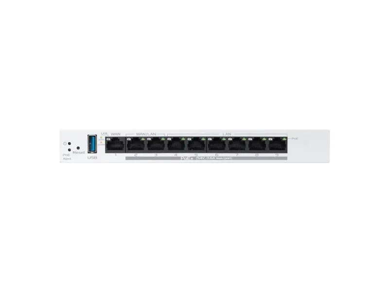 WAN: 1 x 10Base-T/100Base-TX/1000Base-T - RJ-45 LAN: 2 x 10Base-T/100Base-TX/1000Base-T - RJ-45 WAN / LAN: 2 x 10Base-T/100Base-TX/1000Base-T - RJ-45 USB 3.2 Gen 1: 1 x