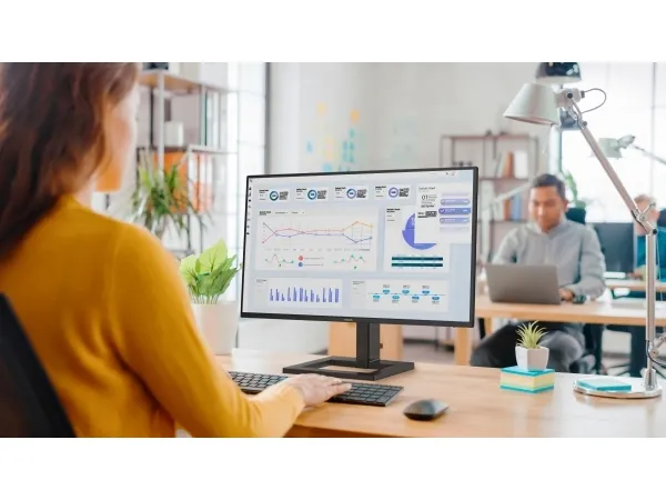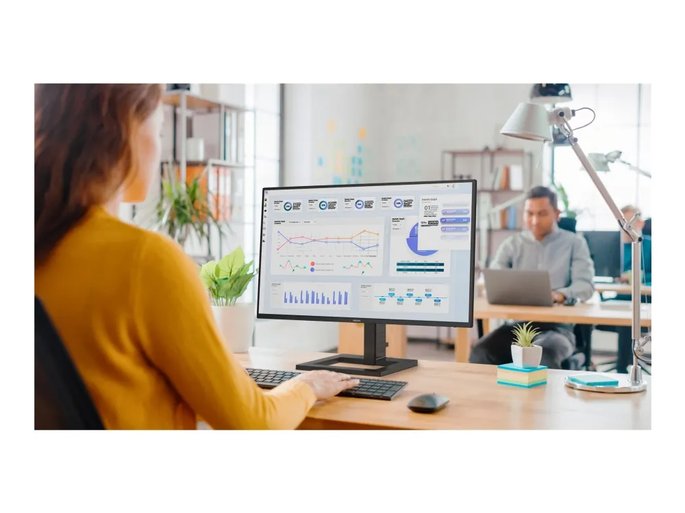 Oppdag Philips 24E1N1300AE-skjermen, som er designet for å forbedre seeropplevelsen din enten du jobber, spiller eller nyter multimedia. Denne 24-tommers skjermen leverer Full HD-oppløsning med 16,7 millioner farger, drevet av WLED-bakgrunnsbelysningsteknologi for lyssterk og jevn belysning over hele skjermen. Skjermen er ergonomisk utformet og kan justeres i høyden og vippes for å sikre komfort under lang tids bruk.