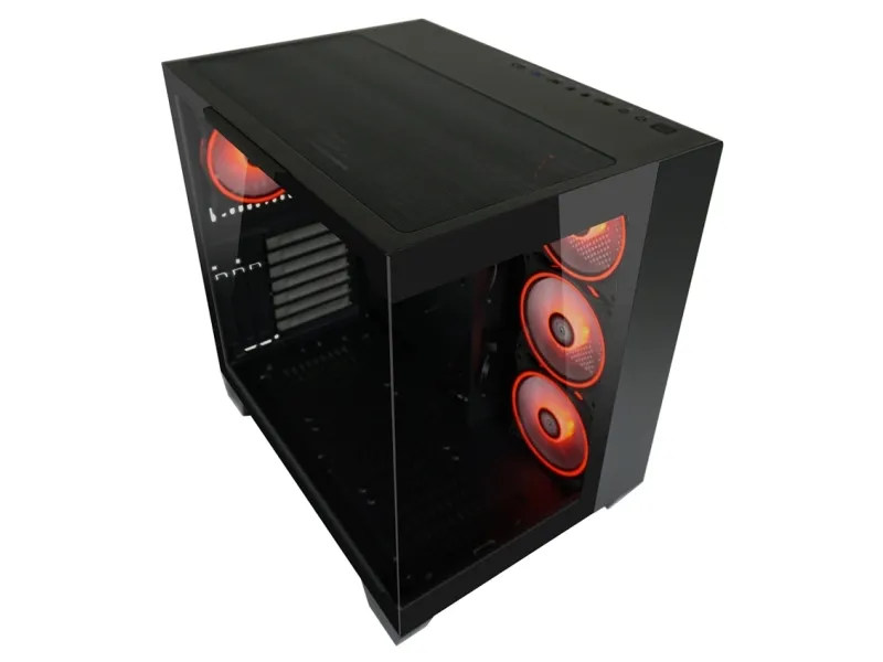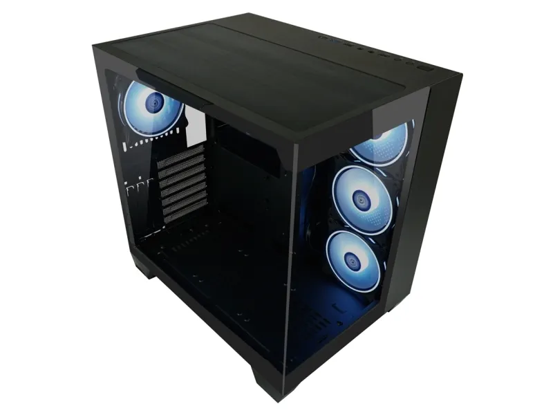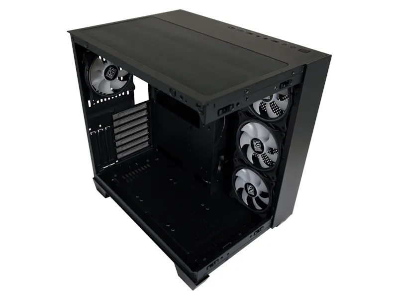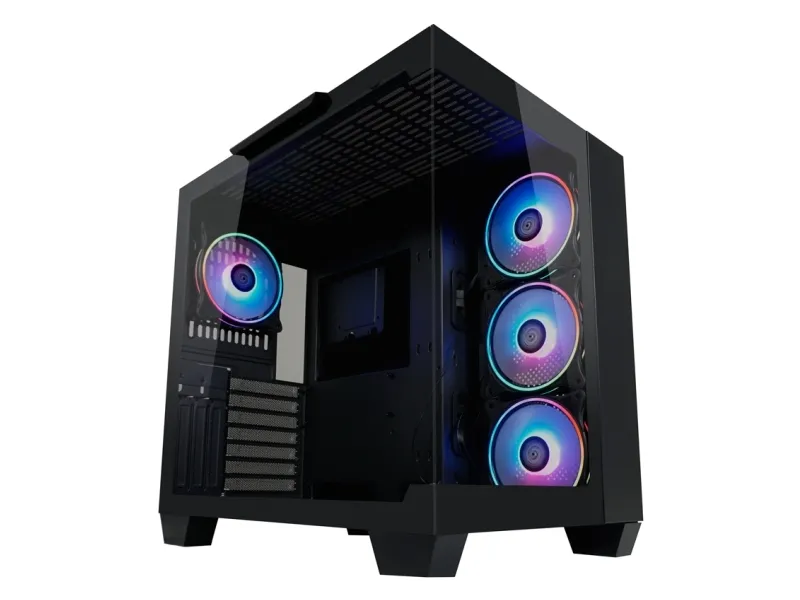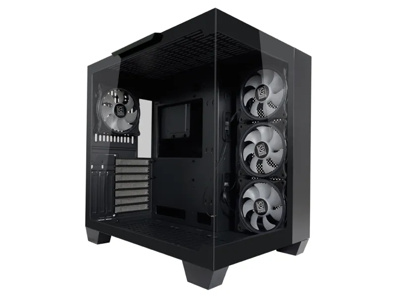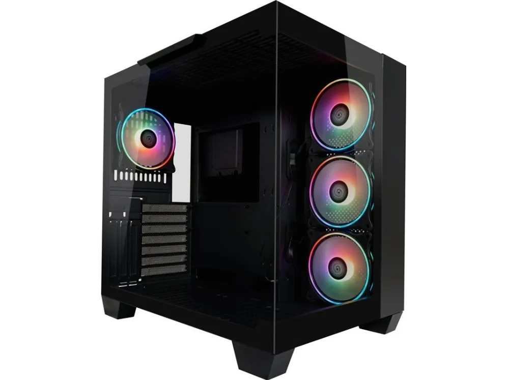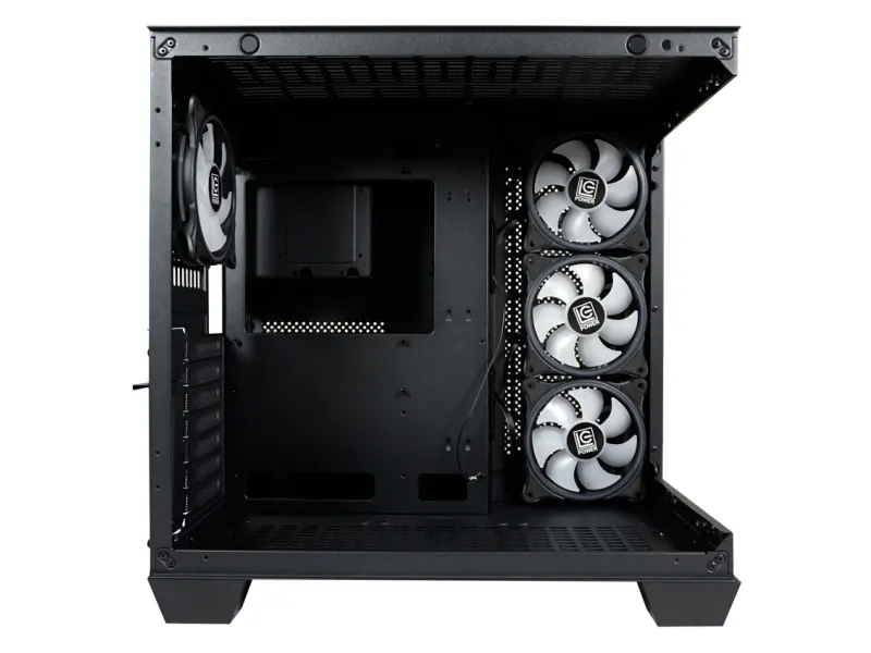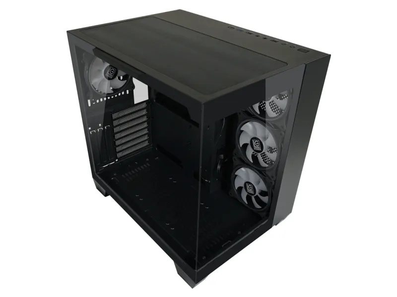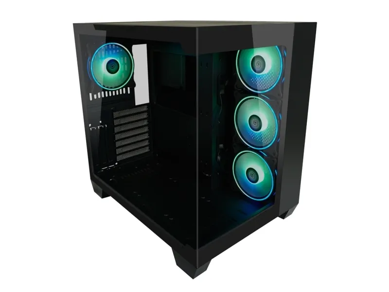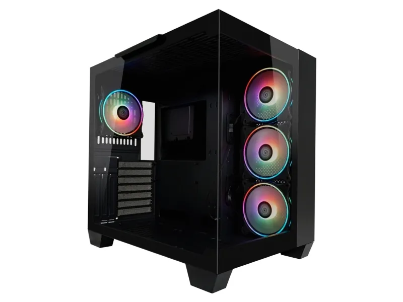The LC Power 809B Dark Storm_X offers a sleek midi-tower design for gamers and PC enthusiasts looking to build a powerful system. With an elegant glass front panel and a windowed side panel made of tempered glass, this chassis provides a pleasing view of the internal components. Equipped with a cable management system and dust filter, it ensures a clean and organized setup. The case supports a variety of motherboards, including ATX and Mini-ITX, providing flexibility for different builds. This chassis is designed for optimal cooling, featuring multiple locations for fans with support for 120 mm and 140 mm sizes. The inclusion of ARGB fans enhances the visual appeal, allowing users to customize lighting effects. With seven expansion slots and ample internal bays for storage devices, the 809B Dark Storm_X ensures plenty of room for future upgrades. Connectivity is made simple with front panel connectors, including USB and audio ports, facilitating easy access for peripherals.