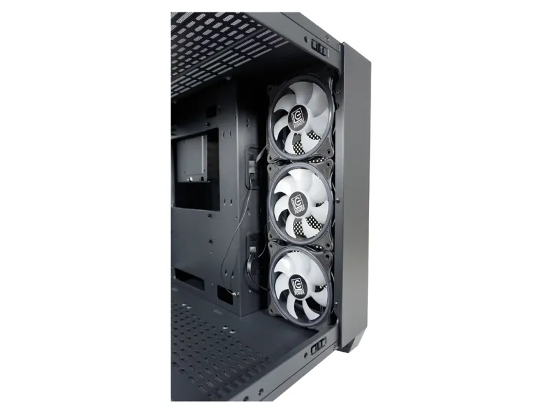 Side: 120 mm vifte x 3 / støtte for 3 x 120 mm- eller 2 x 140 mm-vifte Bak: 120 mm vifte x 1 Topp: 120/140 mm viftemontering x 3 / støtte for 3 x 120 mm- eller 2 x 140 mm-vifte Bunn: 120 mm viftemontering x 3