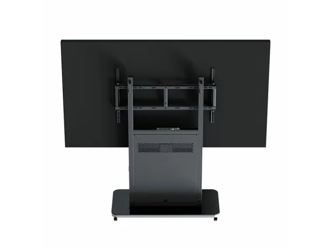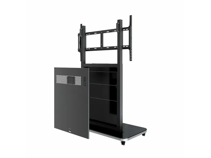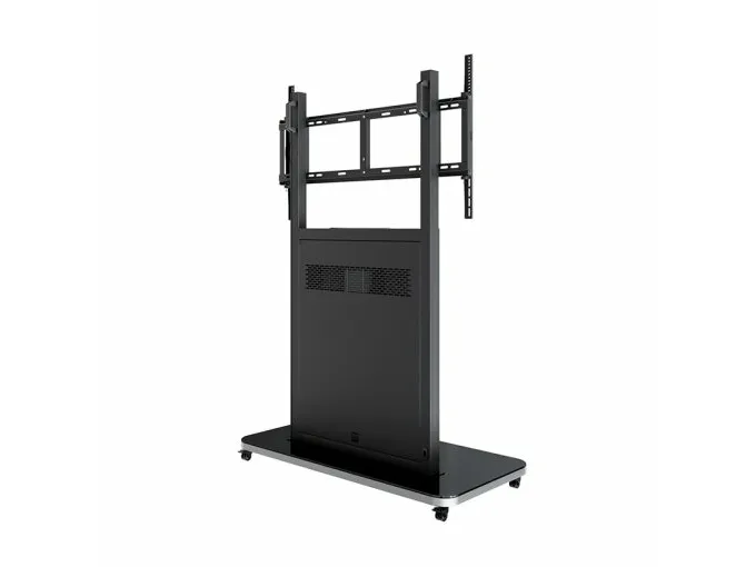 The HAGOR Pro-Tower L cart offers a robust and flexible solution designed for flat panel and LCD displays ranging from 75" to 98". This versatile cart is perfect for various applications, ensuring easy mobility and stable support for large screens. The integrated power strip and cable management system keep your setup organized and clutter-free, allowing for a seamless viewing experience. With a maximum load weight of 140 kg, this cart can securely accommodate your display with confidence.