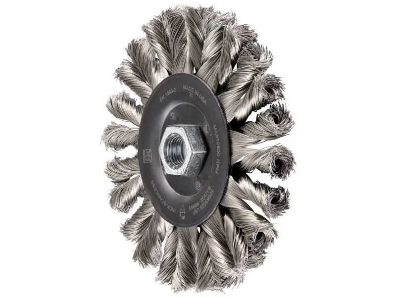 OBS! Denne produktbeskrivelse er endnu ikke blevet oversat til dansk af vores oversættere. Derfor er teksten maskineoversat fra den tyske originaltekst. Børsten er affedtet og efterlader ingen olierester på emnet Ekstremt høj bestandtæthed, som giver optimal holdbarhed Høj arbejdskomfort med roligt løb uden at børsten slår tilbage Egnet til bearbejdning af hjørner og kanter, da gryden drejer mindre op. Aggressiv børsteeffekt takket være trådenes høje stivhed. Fremragende korrosionsbestandighed