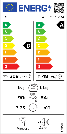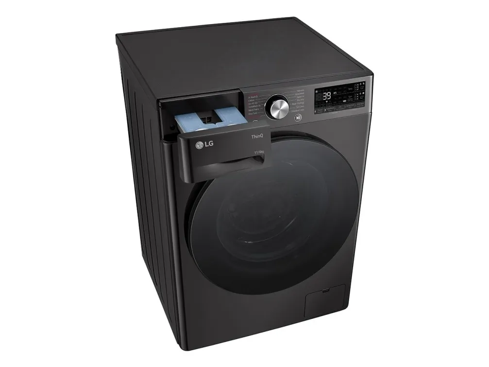 The LG F4DR711S2BA washer/dryer is designed to handle a substantial 11 kg load capacity, suitable for families and large households. With multiple drying programs, including time dry and LowTemp Dry, it accommodates various fabric needs efficiently. This device integrates smart technology, featuring Wi-Fi connectivity and compatibility with Google Assistant and Alexa, enabling remote control through voice commands. The stainless steel drum ensures durability, while the AI DD and LoadSense technologies optimize washing and drying cycles for performance.