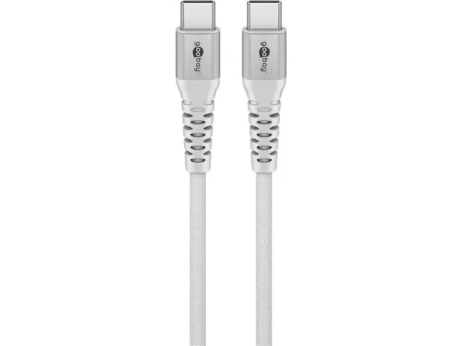 60 W, 3 A, elegant og ekstra robust tilslutningskabel til enheder med USB-C™-port Robust opladnings- og datakabel med tekstilbelagt silikonehylster for maksimal fleksibilitet og absolut beskyttelse mod kabelbrud USB-C™-ladekablet muliggør superhurtig opladning med maks. 60 W og højhastighedsdataoverførsel med op til 480 Mbit/s De forstærkede metalstik med knækbeskyttelse er designet til over 10.000 bøjningscyklusser, hvilket gør USB-C™ til USB-C™-opladerkablet ekstremt holdbart USB-forlængerens flettede, slidstærke tekstilkappe har en behagelig fornemmelse og er skånsom mod følsomme overflader USB-kablet er kompatibelt med smartphones, tablets og laptops fra populære producenter og understøtter også opladningsfunktionen på Apple MacBook Med en praktisk længde på 2 m sikrer Goobay USB-C™-opladningskablet en generøs rækkevidde