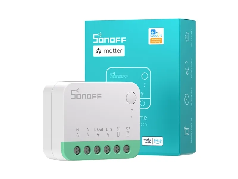 Revolutionize your home environment with the Sonoff Smart Switch MINIR4M, an innovative device that combines advanced technology, versatility and security. With Matter compatibility, the MINIR4M works with a variety of end-device brands and platforms, such as Alexa, Apple Home, and Google Home. Its miniature size allows for easy installation, and TÜV, CE and FCC certifications guarantee safety and reliability. Discover how MINIR4M transforms the management of home devices into a simple, efficient and enjoyable activity.