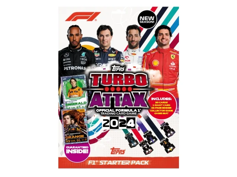 Topps F1 Turbo Attax returns for 2024 with an action-packed 5th anniversary collection featuring over 400 cards to collect. These cards perfect for both collectors and fans of Formula 1 and is a great way to show your support for your favorite team! Don't miss out on this opportunity to own a piece of Formula 1 history. Brand new limited cards to collet “Canary Yellow and Ultra Rare Opal” and 4 limited edition cards from every collection since the start of the game from 2020-2023. New cards with Wood Effect to celebrate the 5th anniversary. Legends never seen on the Turbo Attax cards before! Will you find the Michael Schumacher?