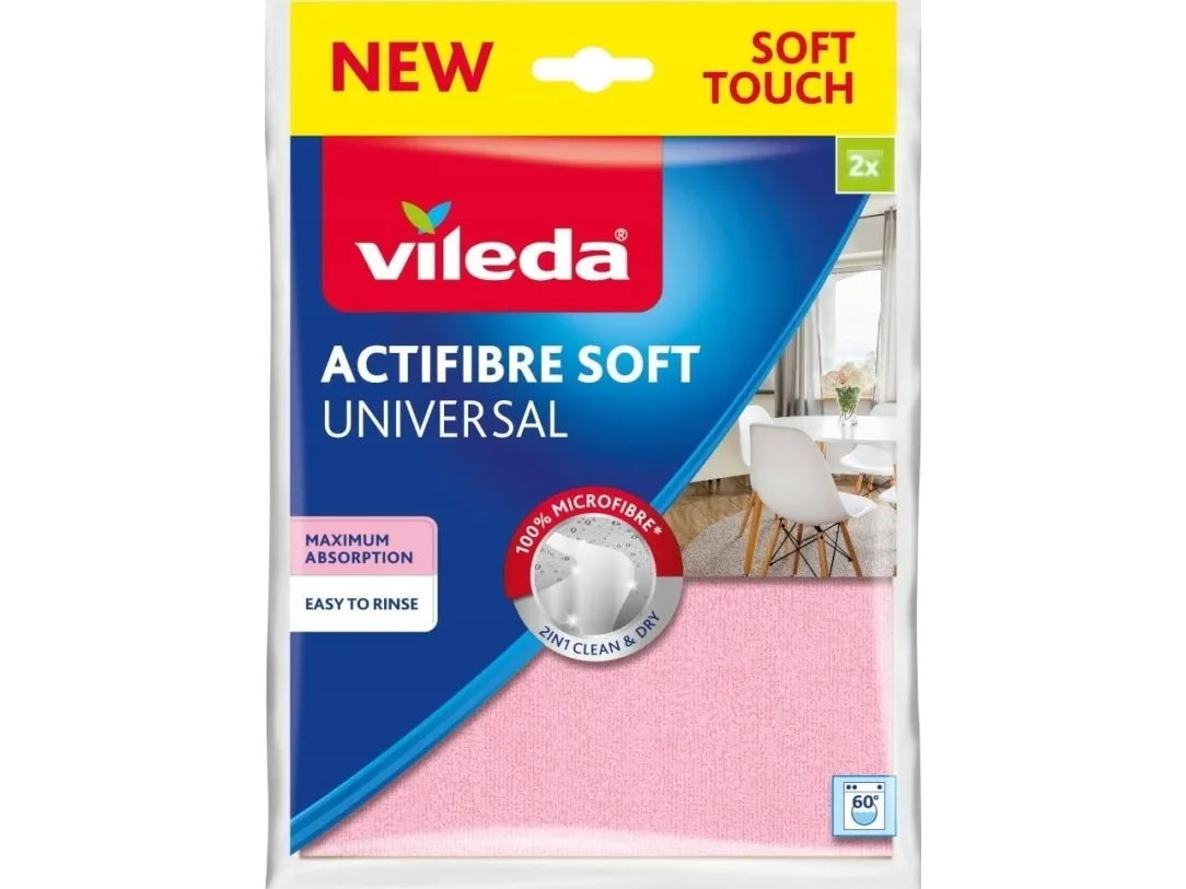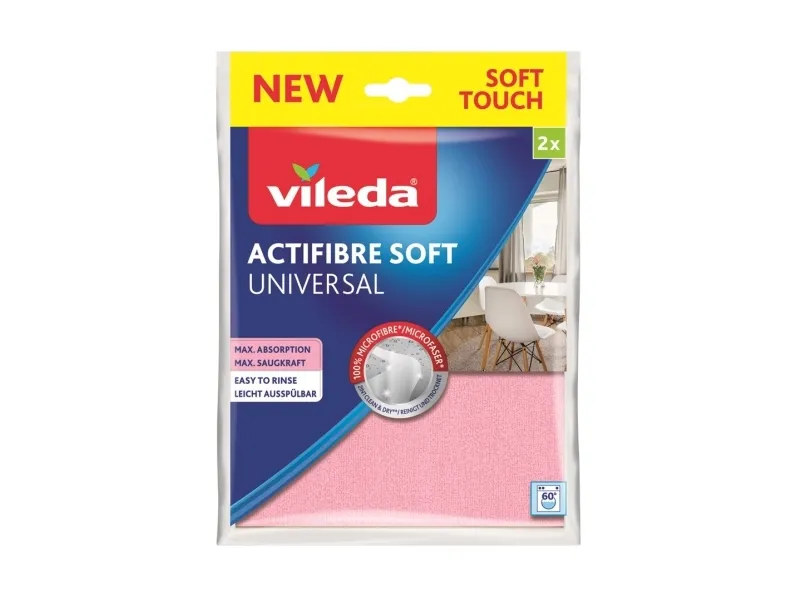 Vileda 4023103240810. Material: Microfibre, Polyurethane, Product colour: Grey, Pink, Washing type: Machine wash. Width: 260 mm, Height: 180 mm, Thickness: 1.5 cm. Quantity per pack: 2 pc(s)