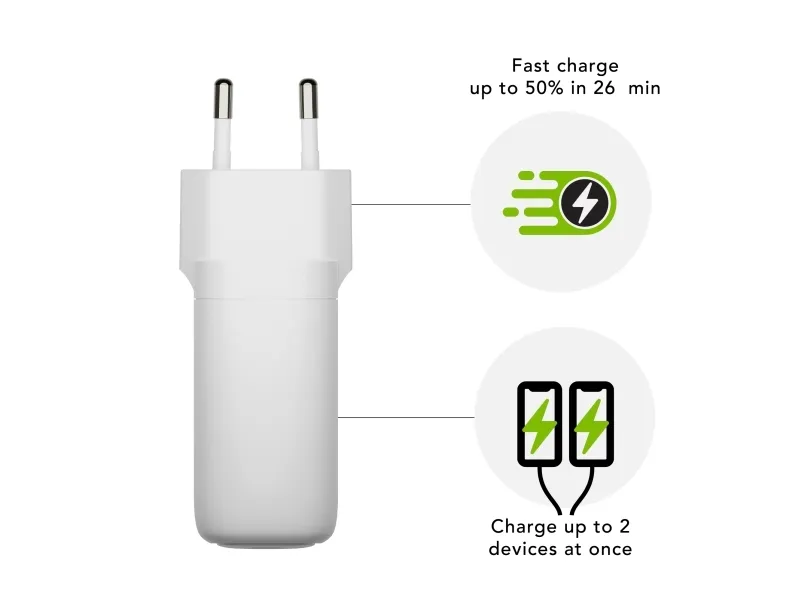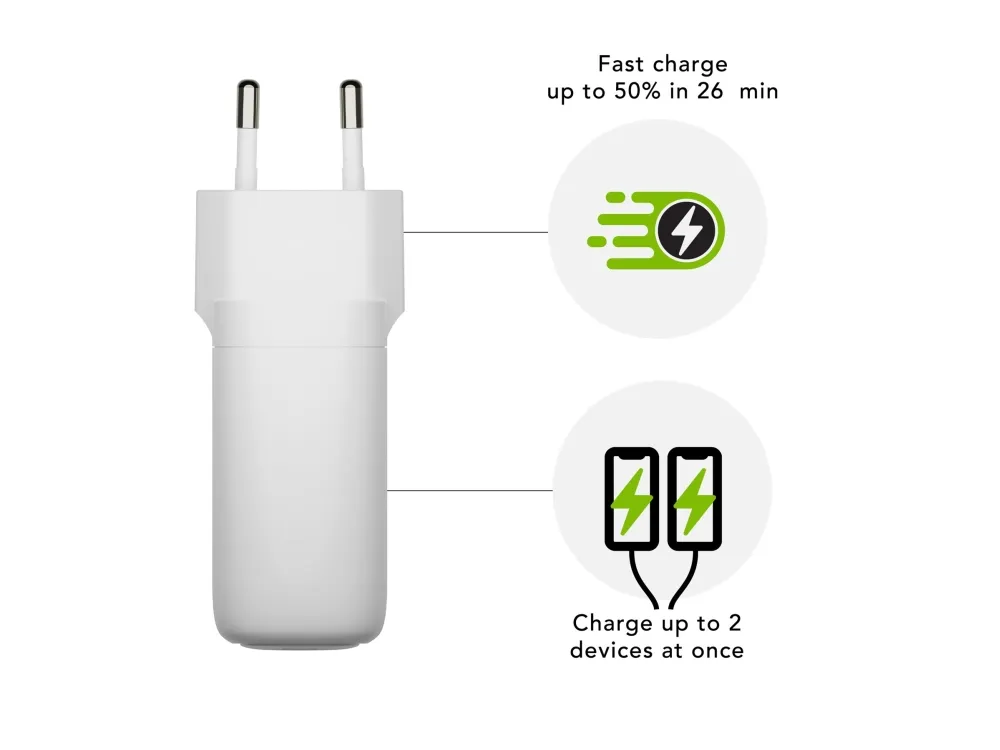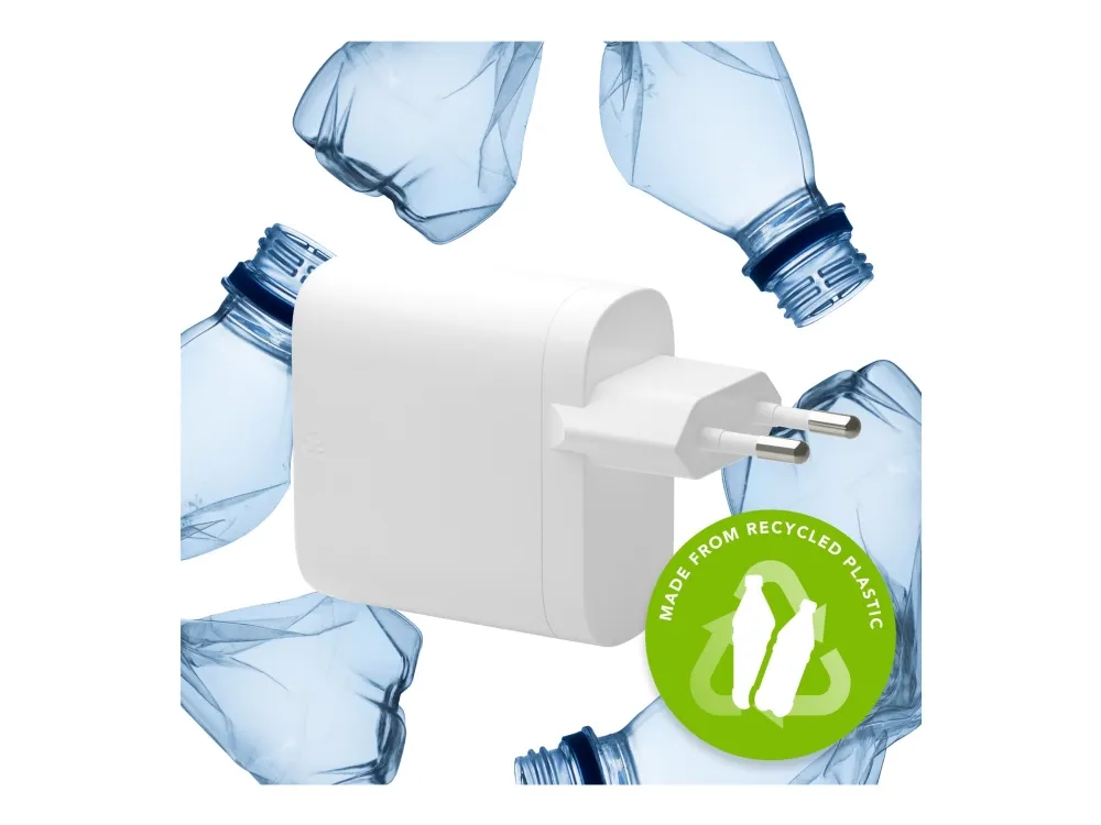 Strømadapteren dbramante1928 tilbyr en allsidig ladeløsning for nettbrett, mobiltelefoner og bærbare datamaskiner. Med en utgangseffekt på 45 W forsyner den effektivt flere enheter med energi. Den miljøvennlige designen med 100 % resirkulert plast sikrer samsvar med Global Recycle Standard (GRS), noe som gjør den til et godt valg for miljøbevisste forbrukere.