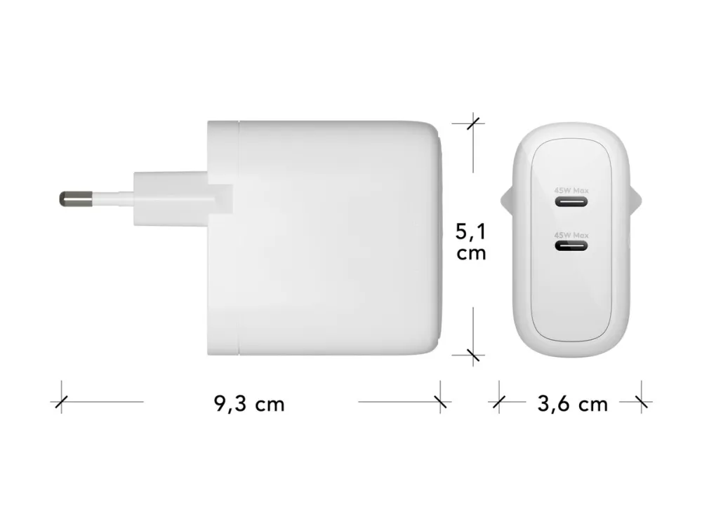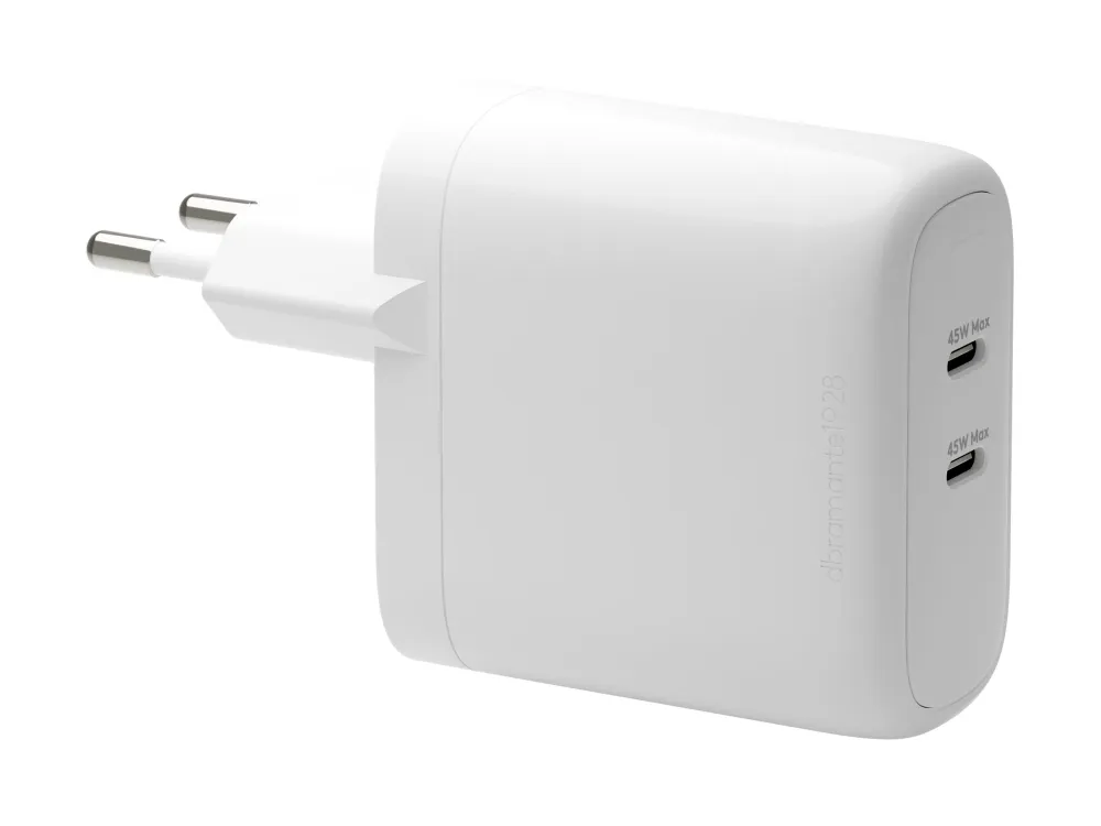 dbramante1928 re-charge - Strømadapter - 45 watt - PD, QC - 2 utgangskontakter (24 pin USB-C) - hvit - Europa