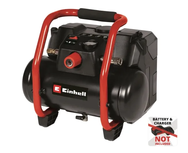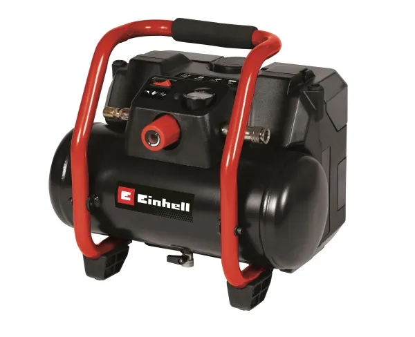 Einhell Power X-Change batterikompressor Te-AC 36/150 Li OF-Solo Medlem af Power-X-Change familien, 2 x 18 V-batteri er nødvendigt TWIN-PACK-teknologi: 2 x 18 V Power X-Change batterier - mere power Power Oliefri, servicefri pumpe, der giver mindre vedligeholdelse Mobil, effektiv batterikompressor med 6 liter tank Ergonomisk design og håndtag for nem transport Vibrationsdæmpende fødder sørger for sikker stand Afvandingshane til aftapning af kondenseret vand Trykformindsker til manuel indstilling af det ønskede tryk Med Einhell batteri-kompressor Te-AC 36/150 Li OF-Solo forlader luften så let, om det er i værkstedet eller garagen. Dette sørger den mobile og effektive batterikompressor med en 6 liter tank, maks. 8 bar driftstryk og en indsugningseffekt på 150 liter pr. minut. Den drives af Twin-Pack-teknologi, hvor 2 x 18 V Power Power X-Change batterier anvendes. Batterirummet kan lukkes, så de to batterier er optimalt beskyttet mod stænkvand og støv. Pumpen er fri for olie og servicefri, hvorved vedligeholdelsesarbejdet holdes så lavt som muligt. Til det regulerede arbejdstryk er der et manometer og en lynkobling til rådighed. Trykformindsker gør det muligt at indstille det ønskede arbejdstryk manuelt. Mobilitet spiller en stor rolle i batteridrevne apparater, hvorfor man ikke behøver at bruge et integreret bærehåndtag. Med sine gummibelagte og vibrationsdæmpede fødder har den 9,7 kg tunge kompressor et sikkert fæste og genererer næsten ingen arbejdsstøj. For en komfortabel vedligeholdelse bruges drænhanen, som kan lukke det kondenserede vand ud. Et praktisk tilbehørsrum er integreret for at opbevare det tilbehør, der fås separat, så det er lige ved hånden. Der medfølger hverken batteri eller oplader. Disse fås som separat tilbehør.