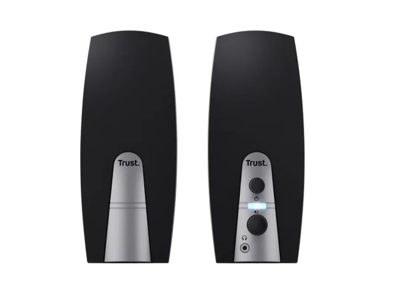Elevate your audio experience with the Trust speakers, designed for PC use. These speakers come equipped with an integrated amplifier and dual 80 mm drivers, ensuring high-quality sound with clear highs and deep bass. With a continuous power output of 5 W and a peak power of 10 W, they deliver robust audio performance that can fill your room. The speakers are USB powered, offering easy setup and use without the need for an external power source. Additionally, the mini-phone stereo 3.5 mm connector ensures compatibility with a wide range of devices. Whether you're listening to music, watching movies, or playing games, these speakers are designed to enhance your audio experience. The convenient controls for power and volume allow for easy adjustments, ensuring that your focus remains on your entertainment. With a sleek design and powerful performance, the Trust speakers are an excellent addition to any PC setup.