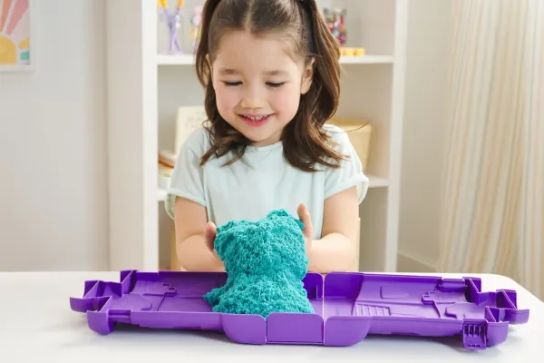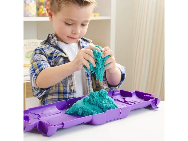 Alt det sjove er mærkbart med Kinetic Sand Slot-Beholder Lime Green. Dette Kinetic Sand-sæt indeholder 453 g grønt Kinetic Sand og en beholder, der kan foldes ud til et legeområde. Børn kan åbne kassen og slippe endeløs kreativitet løs, når de former og klemmer det grønne sansesand og skaber utrolig sandkunst eller lige det, de kan forestille sig. Slot-beholderen er designet, så den kan ligge fladt og holde på sandet i timevis med leg. Det unikke Kinetic Sand er lavet af naturligt sand, der er selvklæbende, hvilket gør rengøringen nem. Det tørrer aldrig ud, så du kan skabe igen og igen. Lad det flyde gennem dine hænder - det er så tilfredsstillende, at du ikke kan lægge fra dig igen. Efter legen foldes slots-beholderen sammen igen, så den fungerer som praktisk opbevaring og nem oprydning, lige indtil næste gang der skal leges. Kinetic Sand er et spændende alternativ til modellervoks, men det er også en fantastisk til kreative og sanselige projekter og som Montessori-legetøj. Kinetic Sand fremmer finmotorik og kreativitet hos børn fra 3 år gennem selvstændig sanse-leg. Få fingrene i sandet med Kinetic Sand Slot-Beholder.