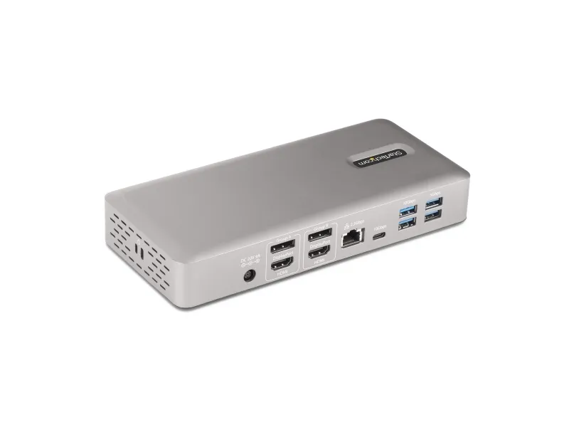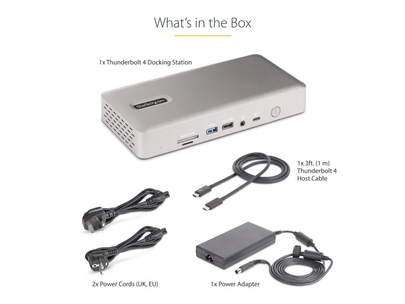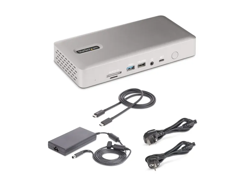 The StarTech.com Advantage StarTech.com Thunderbolt 4 Multi-Display Docking Station, Quad/Triple/Dual Monitor Dock - 2x HDMI/2x DisplayPort, 7x USB Hub, 2.5Gb Ethernet, 98W Power Delivery. Connectivity technology: Wired, Host interface: Thunderbolt 4, USB Power Delivery up to: 98 W. Ethernet LAN data rates: 10,100,1000,2500 Mbit/s, Copper ethernet cabling technology: 2.5GBASE-T, 10BASE-T, 100BASE-T, 1000BASE-T. Product colour: Grey, Compatible memory cards: MicroSD (TransFlash), MicroSDHC, MicroSDXC, SD, SDHC, SDXC, Data transfer rate: 40 Gbit/s. Power source type: DC, AC input voltage: 110 - 240 V, Input current: 2.5 A. Windows operating systems supported: Windows 10, Windows 10 Education, Windows 10 Education x64, Windows 10 Enterprise, Windows 10..., Mac operating systems supported: Mac OS X 11.0 Big Sur, Mac OS X 12.0 Monterey, Mac OS X 13.0 Ventura