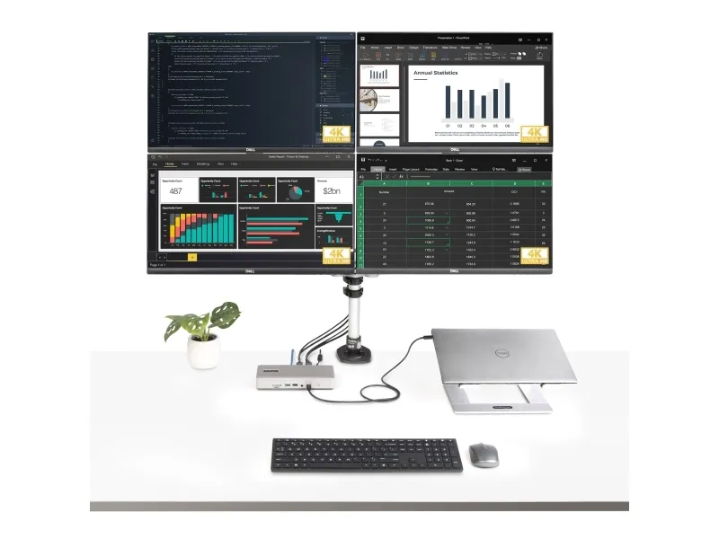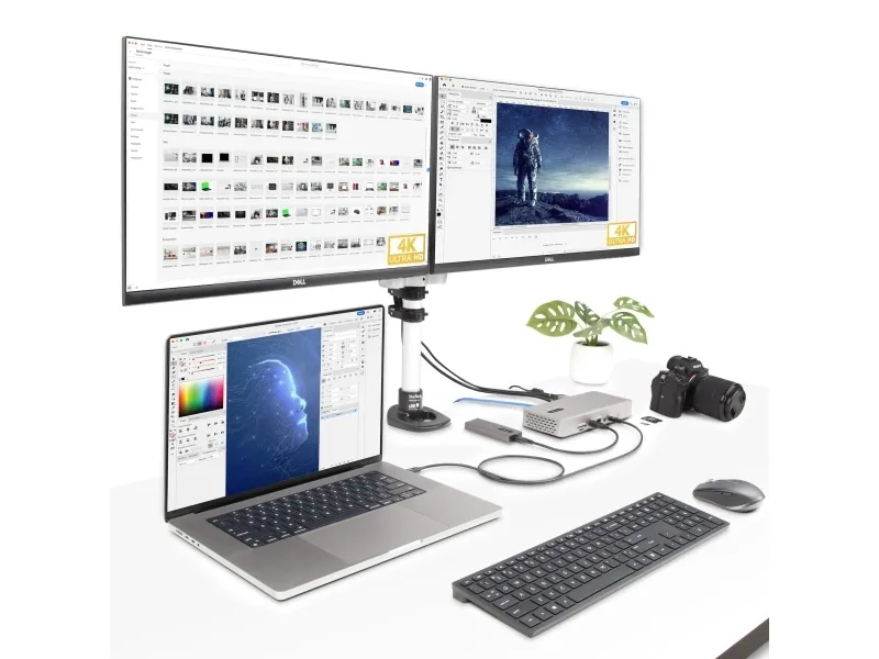 Transform a Thunderbolt 4 laptop into a high-resolution multi-monitor workstation with 7x USB ports, 2.5 Gigabit Ethernet port, 3.5mm audio, plus USB Power Delivery and downstream device charging
