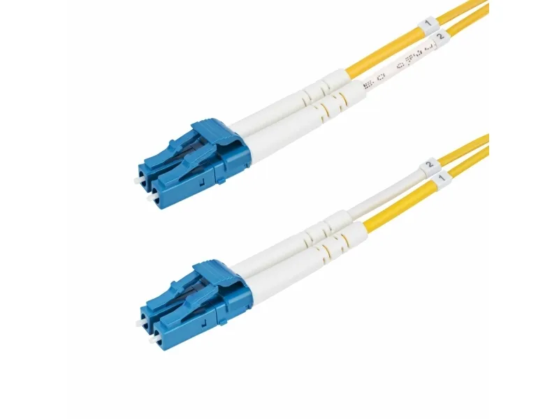 The StarTech.com 20m (65.6ft) LC to LC (UPC) OS2 Single Mode Duplex Fiber Optic Cable is designed for long-distance, high-speed network connections. Featuring a low insertion loss and a high return loss, this cable ensures superior signal integrity for reliable, high-quality data transmission. Its bend insensitive design, with a bending radius of 10 mm, allows for flexible installation in tight spaces without signal degradation. The cable is reinforced with aramid fiber and features a ceramic ferrule, enhancing its durability and lifespan. Additionally, it is equipped with a Low Smoke Zero Halogen (LSZH) jacket, making it a safer choice for the environment and reducing toxic emissions in case of fire. With support for up to 10 Gbps data transfer rates and Coarse Wavelength Division Multiplexing (CWDM), this fiber optic cable is suitable for networks requiring high bandwidth over long distances.