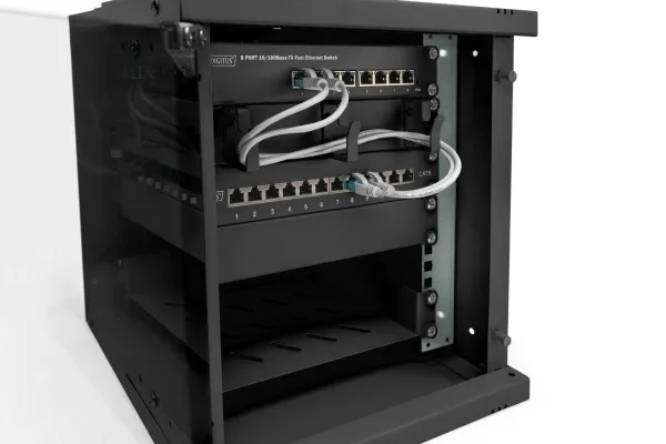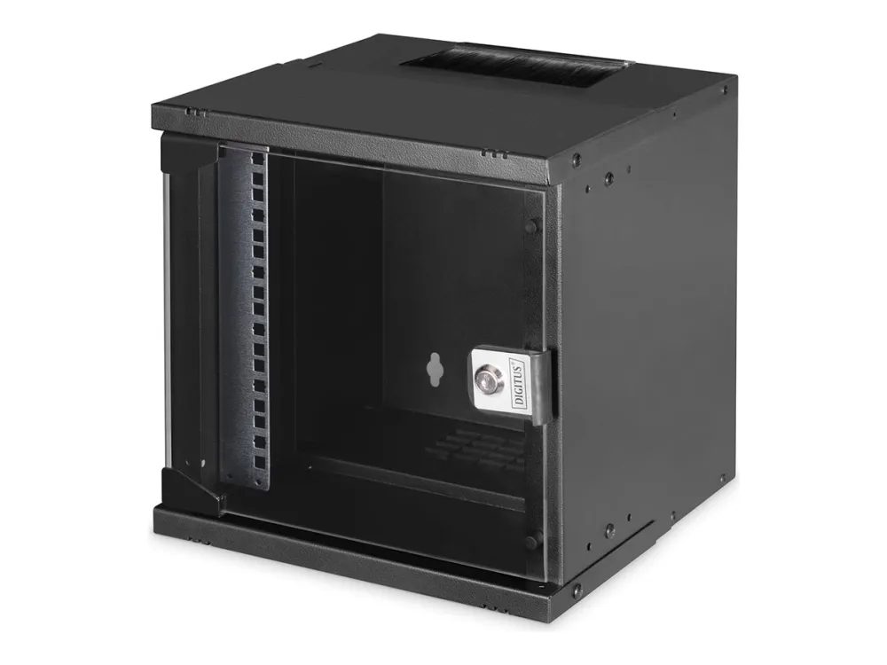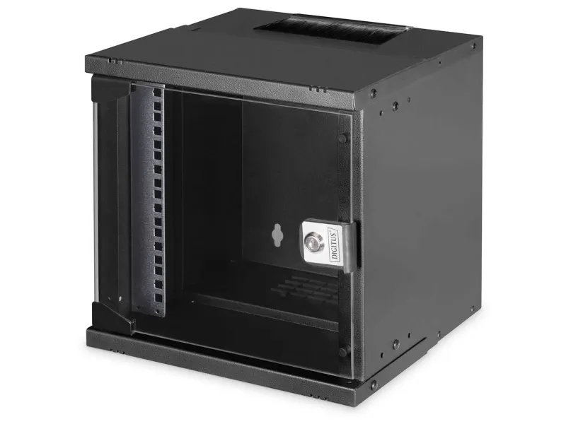The Digitus SOHO PRO Series rack offers a comprehensive solution for securely organizing and mounting your network equipment. Designed with functionality and security in mind, it features a lockable glass door, ensuring your devices are protected yet easily accessible. The inclusion of galvanized rails and robust steel construction supports up to 60 kg, making it a reliable choice for a wide range of networking hardware. Additionally, the rack's wall-mountable design, complete with brushed cable entry, allows for a clean and efficient setup, while the built-in ventilation system ensures your equipment remains cool, promoting longevity and optimal performance. Whether for professional or home office use, the Digitus SOHO PRO Series rack is an essential component for any organized and efficient networking space.