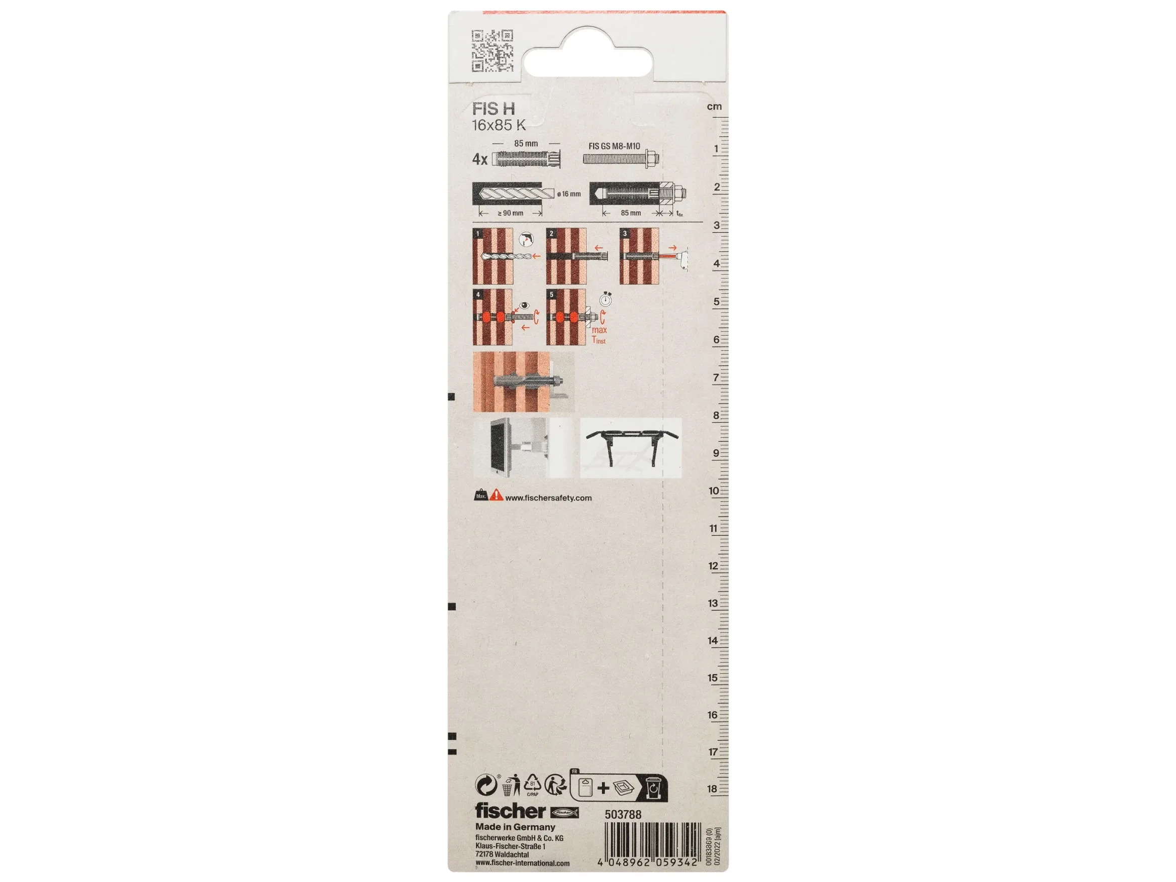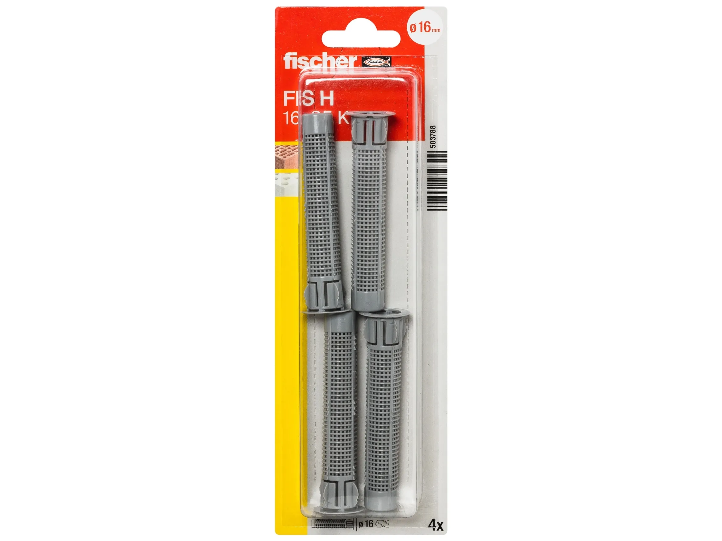 fischer injektions-ankerhylster FIS H 16 x 85 K plast fischer injektions-ankerbøsningen FIS H K er systemkomponenten for en korrekt og mørtelbesparende montering af ankerstangen FIS A eller indvendigt gevindanker FIS E i hulstensmurværk. Derudover kan fischer injektionsmørtel FIS V, FIS VW HIGH SPEED, multifunktionsmørtel, montagmørtel og monteringskorn Green anvendes. Den optimerede gitterstruktur reducerer forbruget af injektionsmørtel. Ved indstilling af ankerstangen og indvendig gevindanker trykkes mørtel ned gennem gitterstrukturen og forbinder sig formsluttende med hulstenen. Derved ledes belastningen ind i byggematerialet. Påsætning sker i påmonteringsarbejdet. Med injektions-ankerhylstrene kan der broforbindes ikke-bærende lag. Der skal tages hensyn til godkendelserne af de pågældende injektionsmørtel.