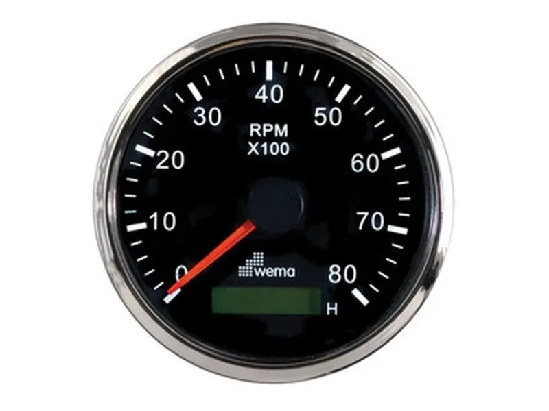 Silverline instrument med høj nøjagtighed og valgfri rød / gul LED baggrundsbelysning. Vandtæt IP56, modstandsdygtig overfor UV og saltvand Udskæring: 85 mm, Yderdia. 105 mm, Dybde 60 mm.