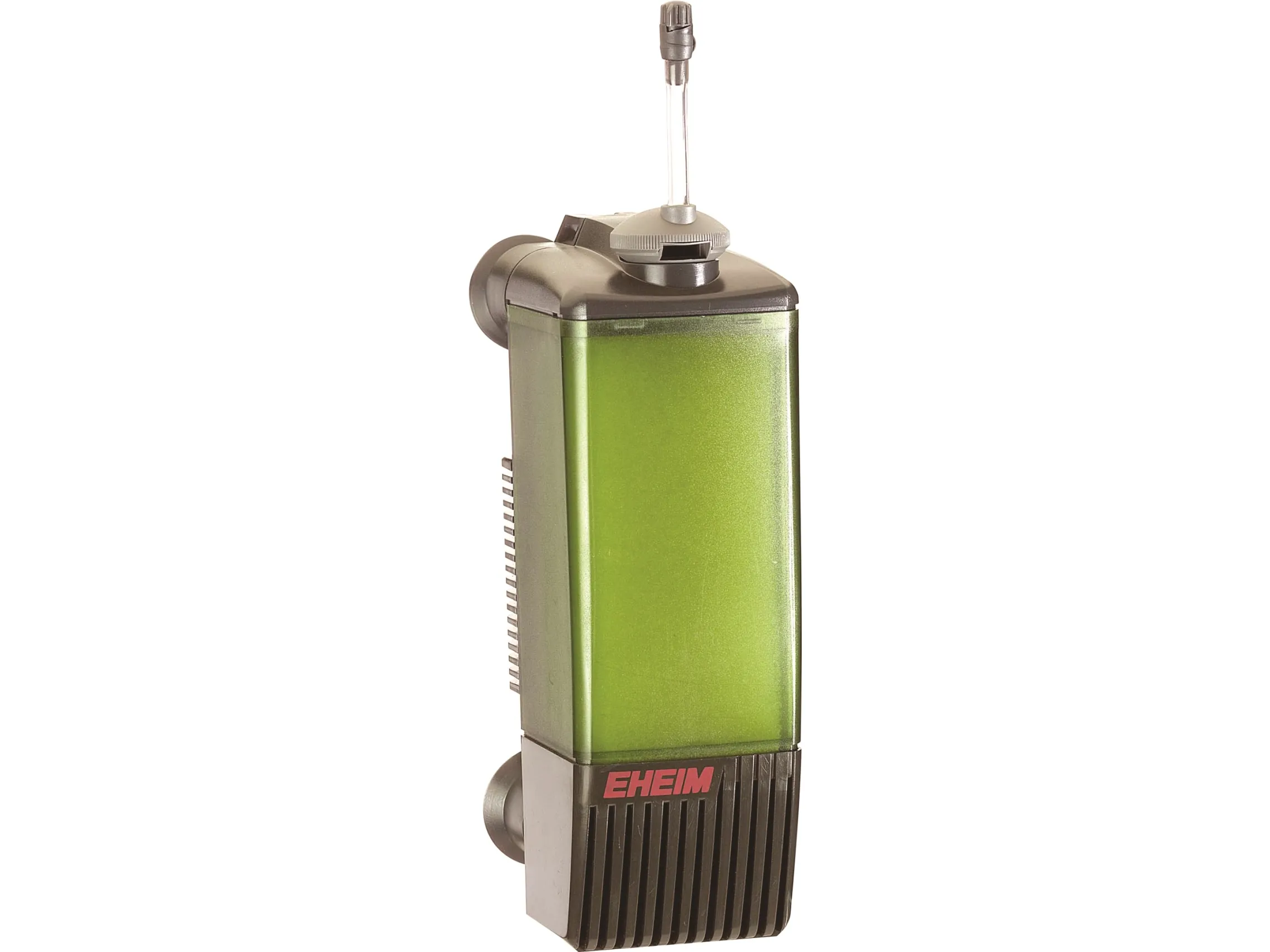 Filteret er sat fat i akvariet med sugekopper. Pumpen bliver i tanken, når filteret tages ud for rengøring.