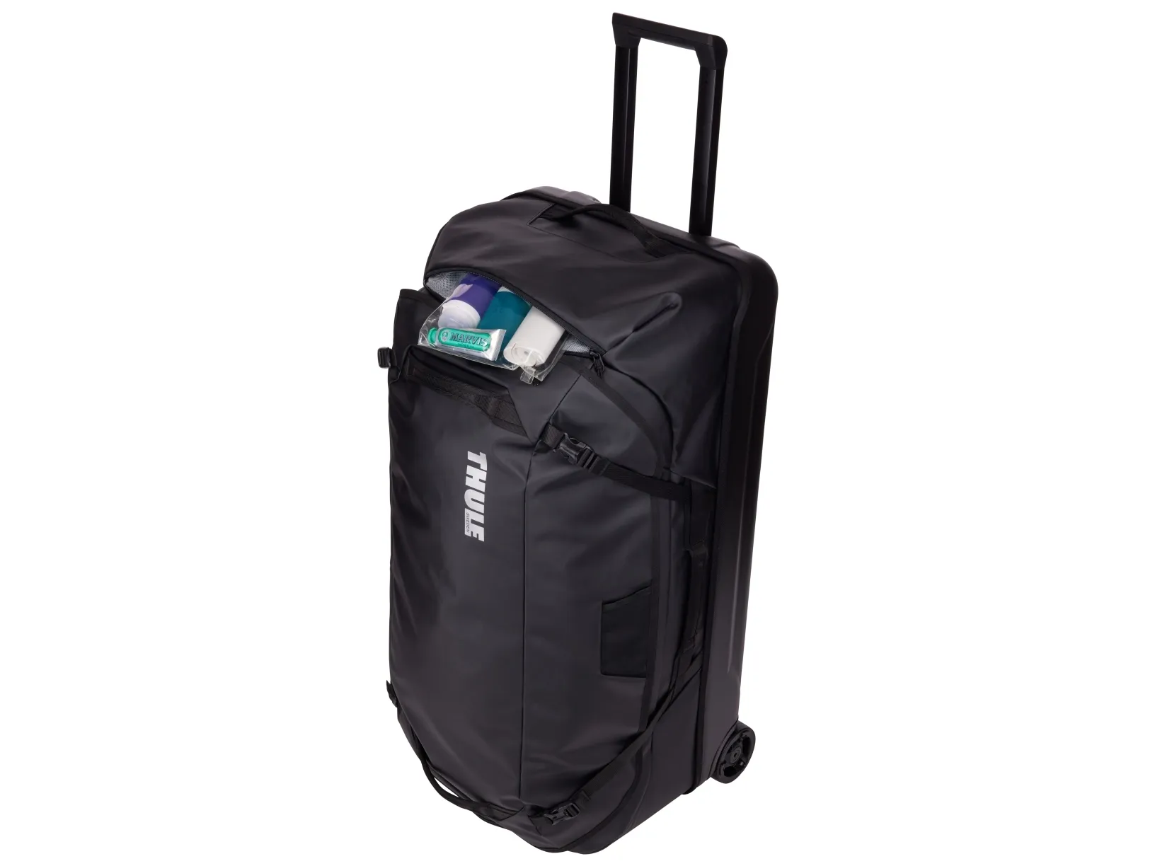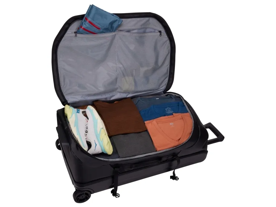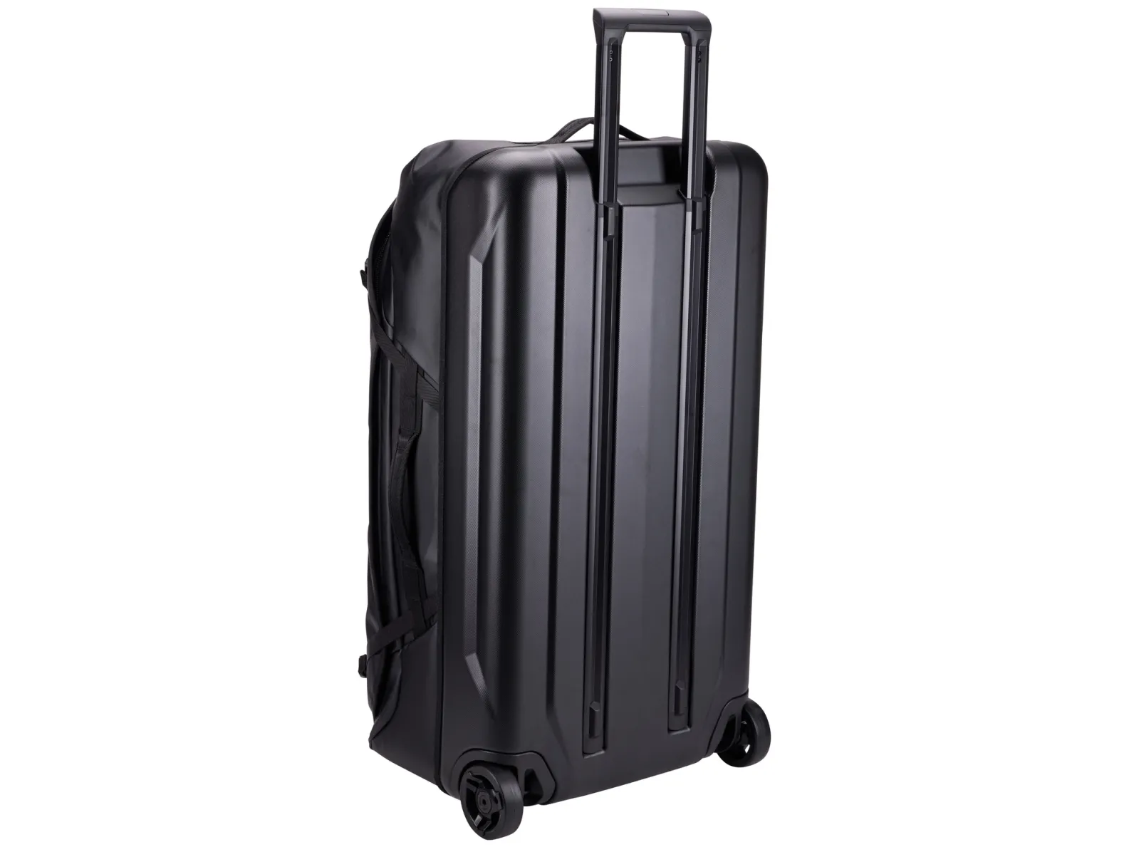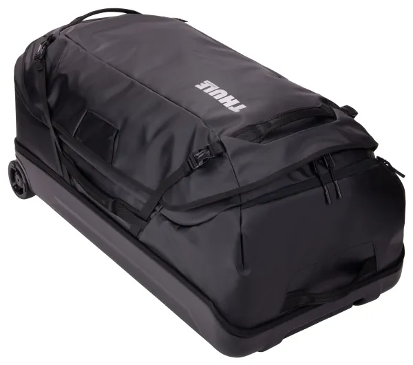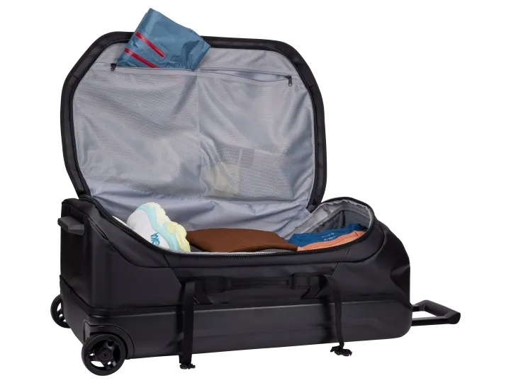 The Thule Chasm 3204987 is a versatile duffle bag designed to meet various travel needs. Constructed from durable 900D polyester combined with a phthalate-free laminate, this bag ensures lasting performance while being environmentally friendly with its 100% recycled materials. The spacious 110-liter capacity provides ample room for all essentials, and its oversized opening makes packing and accessing items effortless. Equipped with a molded polycarbonate back panel and impact-absorbent protection, the bag handles rough conditions, making it ideal for adventurous journeys. Convenience is a priority with the Thule Chasm, featuring a telescopic handle and oversized wheels that facilitate smooth maneuverability. The bag includes multiple compartments, such as internal mesh pockets, an ID card holder, and a quick access pocket for organized storage. With water-repellent and weather-resistant properties, this suitcase duffel is prepared for any travel situation.
