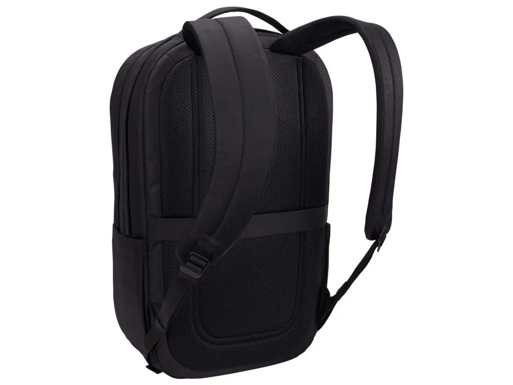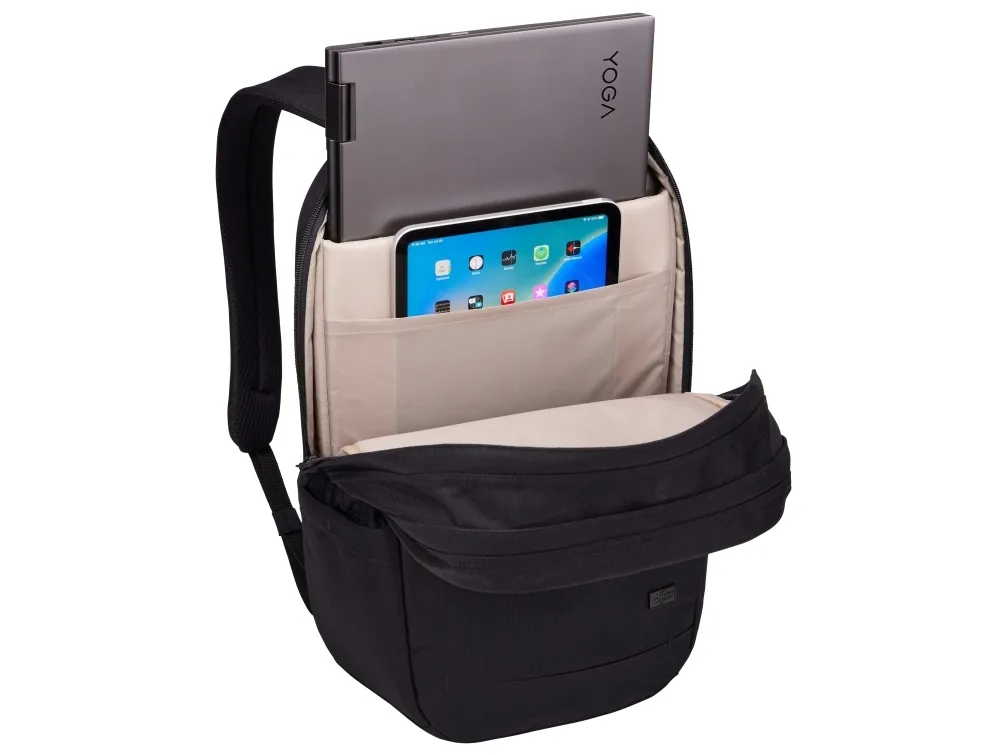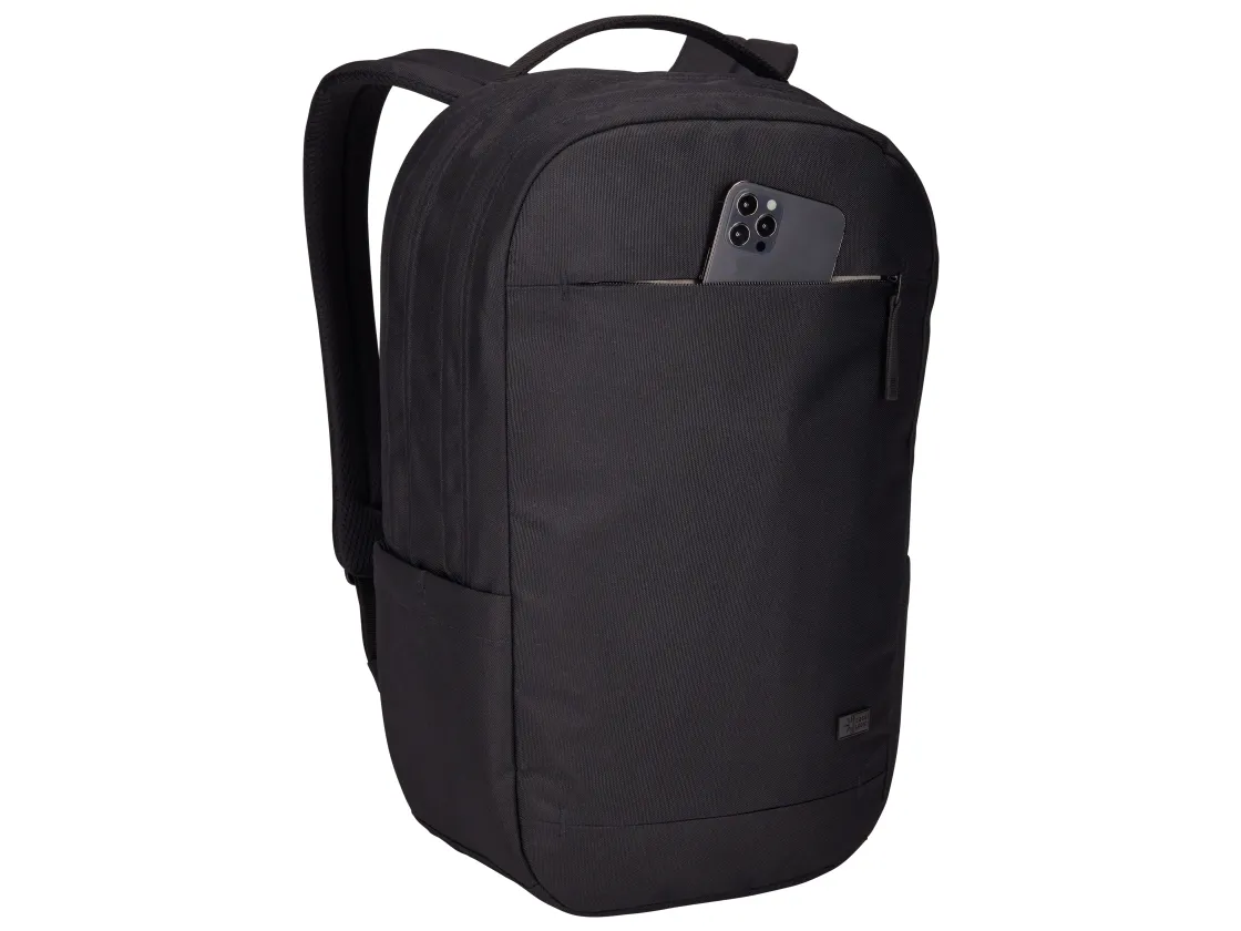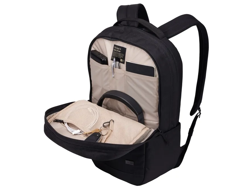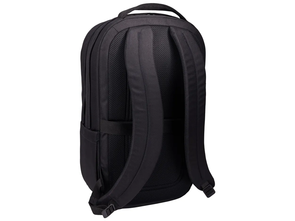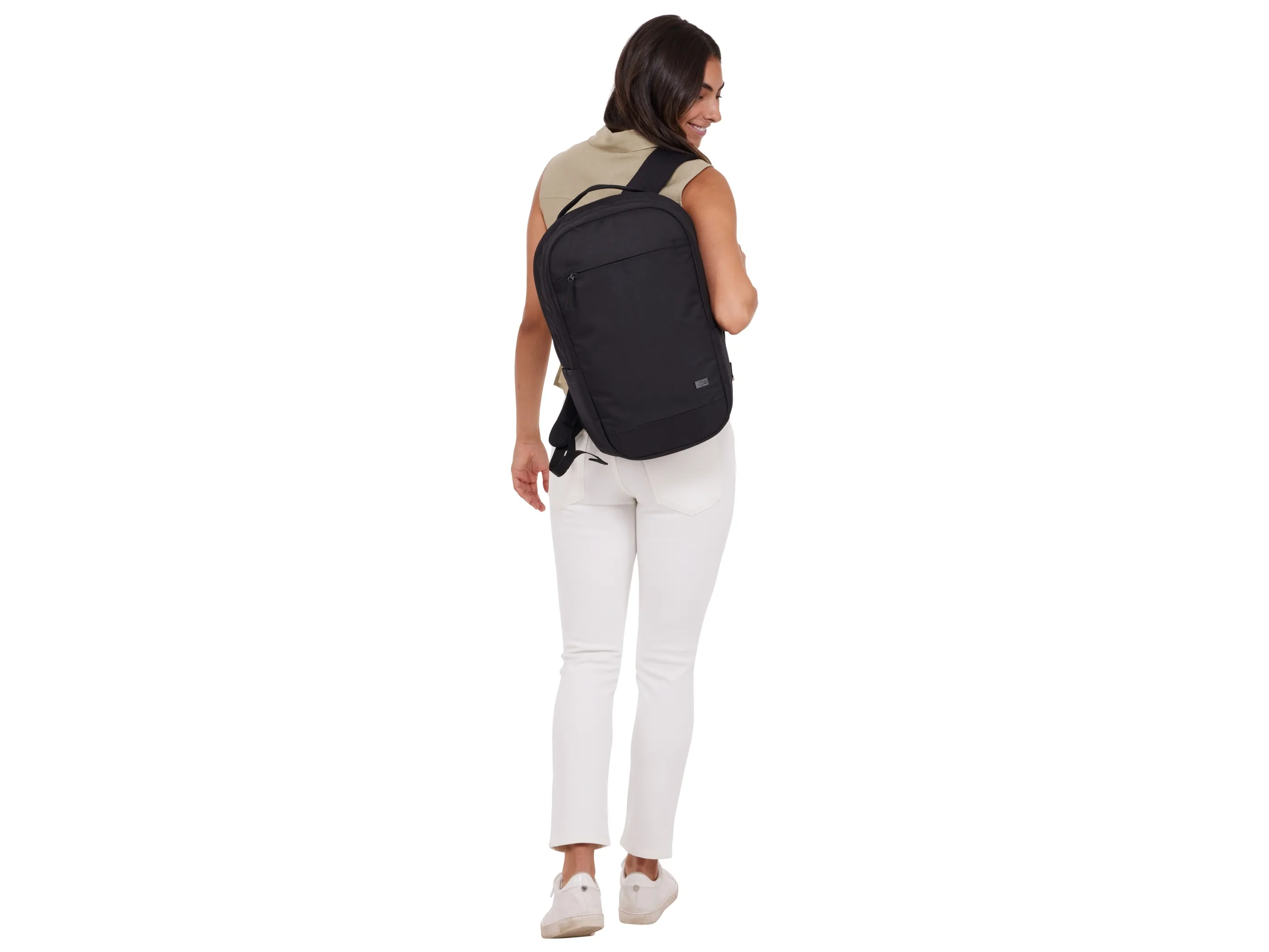 The Case Logic Invigo laptop backpack is designed for the eco-conscious traveler, offering a blend of style, functionality, and sustainability. Made entirely from recycled polyester, it not only supports environmental sustainability but also provides a durable solution for carrying your laptop and accessories. This backpack features a variety of compartments, including a hidden back pocket, slip pockets, and a zippered mesh pocket, ensuring ample storage for all your essentials. Comfort is key with padded shoulder straps, a soft padded handle, and a luggage strap for easy attachment to rolling luggage, making it the perfect travel companion. Additionally, the water-repellent fabric protects your belongings from the elements, making this backpack an ideal choice for everyday use and travel alike.