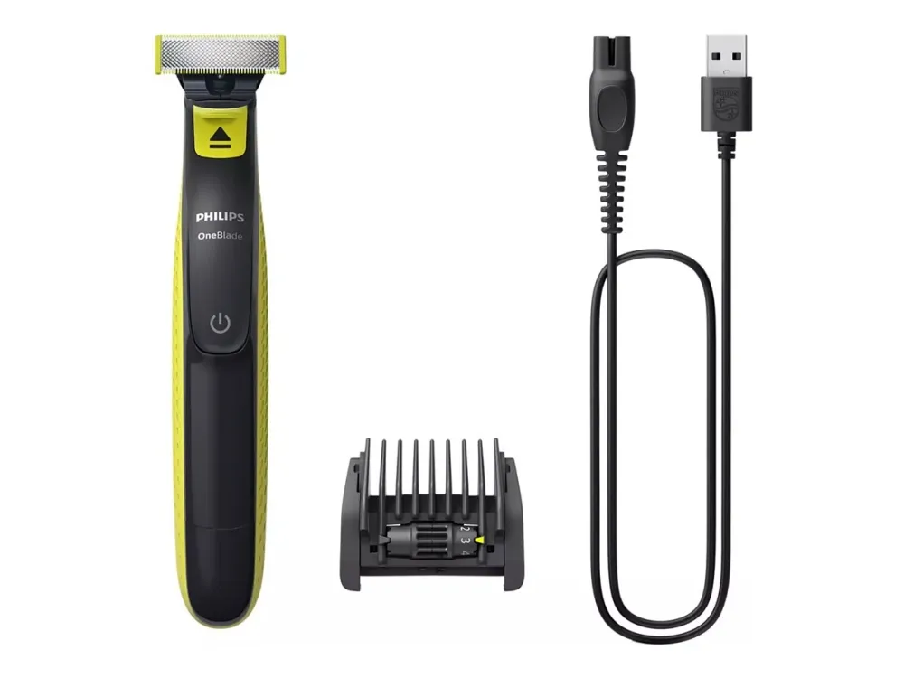 Philips OneBlade QP2724 omdefinerer groomingopplevelsen ved å kombinere effektivitet med bekvemmelighet. Denne barbermaskinen er designet for å passe til alle typer ansiktshår, og har skäggstubbkammar i tre forskjellige størrelser (1 mm, 3 mm, 5 mm) for personlig grooming. Den fullt vaskbare funksjonen, kombinert med et blad i rustfritt stål, gjør vedlikeholdet til en lek, med en rask skylling under vann for å holde den ren. OneBlade sørger for at du alltid er klar med 45 minutters trådløs drift etter bare 8 timers lading, drevet av et slitesterkt nikkelmetallhydridbatteri. Enten du foretrekker tørrbarbering for å få en rask og praktisk barbering eller våtbarbering for å få en frisk og ren følelse, tilpasser Philips OneBlade seg din livsstil og gir deg en behagelig barbering med sin ergonomiske design. Omfavn fleksibiliteten og effektiviteten til Philips OneBlade QP2724 og få en pleieopplevelse som oppfyller kravene i det moderne livet.