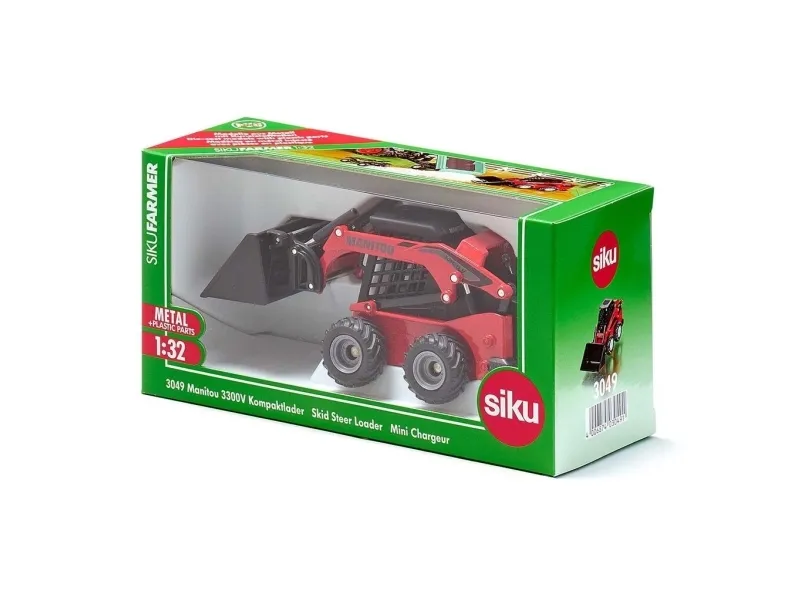 Detaljert Manitou 3300V kompaktlaster. Et bredt spekter av funksjoner: Gummidekk med landbruksdesignet slitebane, Bevegelig spade og lastearm, Lastearmbyttesystem kompatibelt med: siku 3658, siku 3661, siku 7070 - Perfekt tillegg til andre siku-produkter. Utmerket tillegg til siku-modeller i samme skala. Målestokk: 1:32, Materiale: metall/plast, Mål: 14,3 x 5,8 x 8,8 cm.