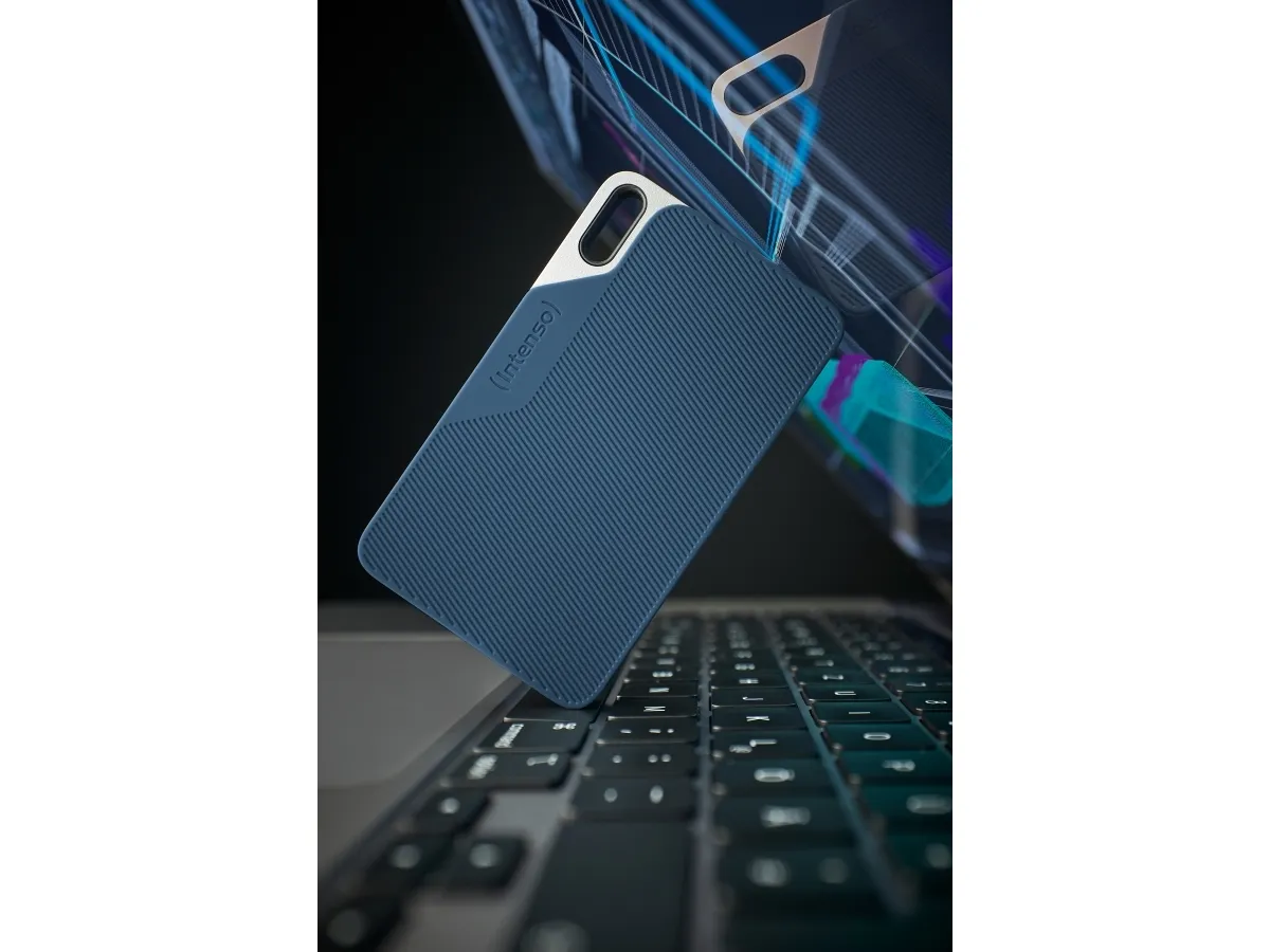 Discover the Intenso TX100, a portable external hard drive that redefines data storage with its blend of speed, durability, and silent operation. Designed to meet the needs of professionals and casual users alike, the TX100 boasts a sound emission of 0 dBA, ensuring a noise-free environment whether you're working late at night or in a quiet space. Its shock-resistant design and rubberized plastic material offer durability, making it the ideal companion for those who demand reliability on-the-go.