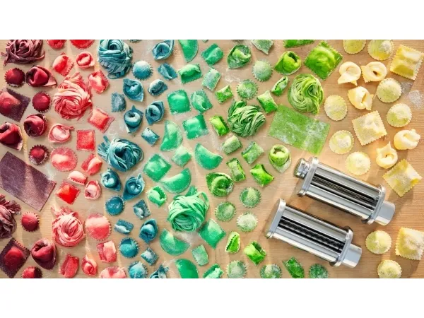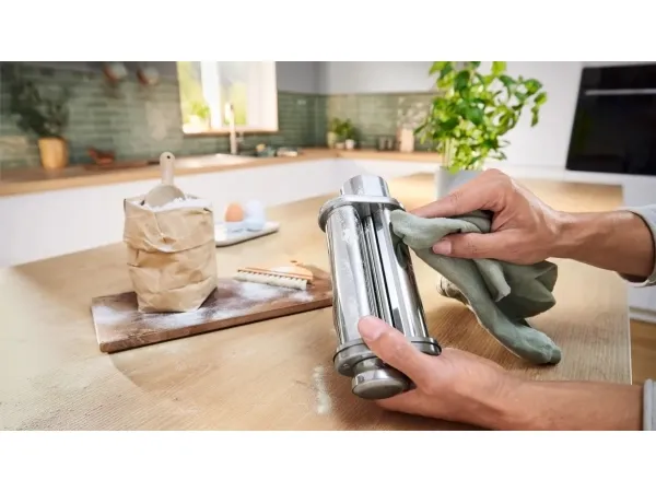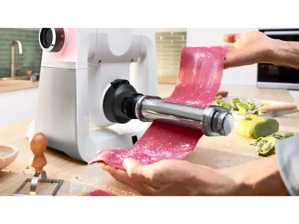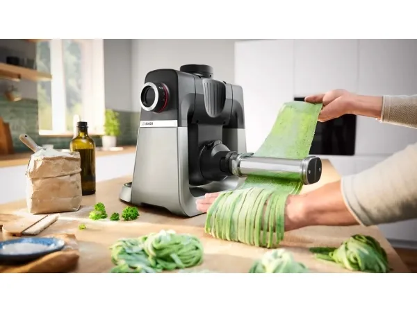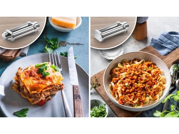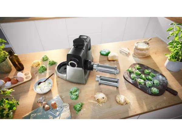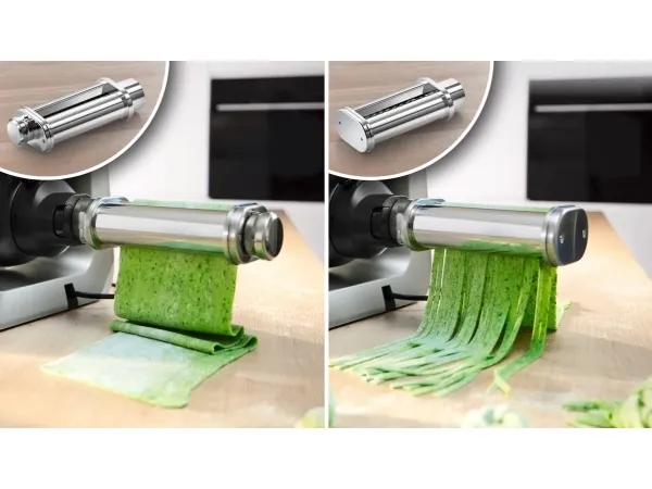 MUZSE6PP Fremragende resultater Inklusive professionel pastaforsats Lasagne til fremstilling af laktlader Inkl. ProFi-pastaforsats TAgiatelle til fremstilling af 6 mm brede båndnudler
