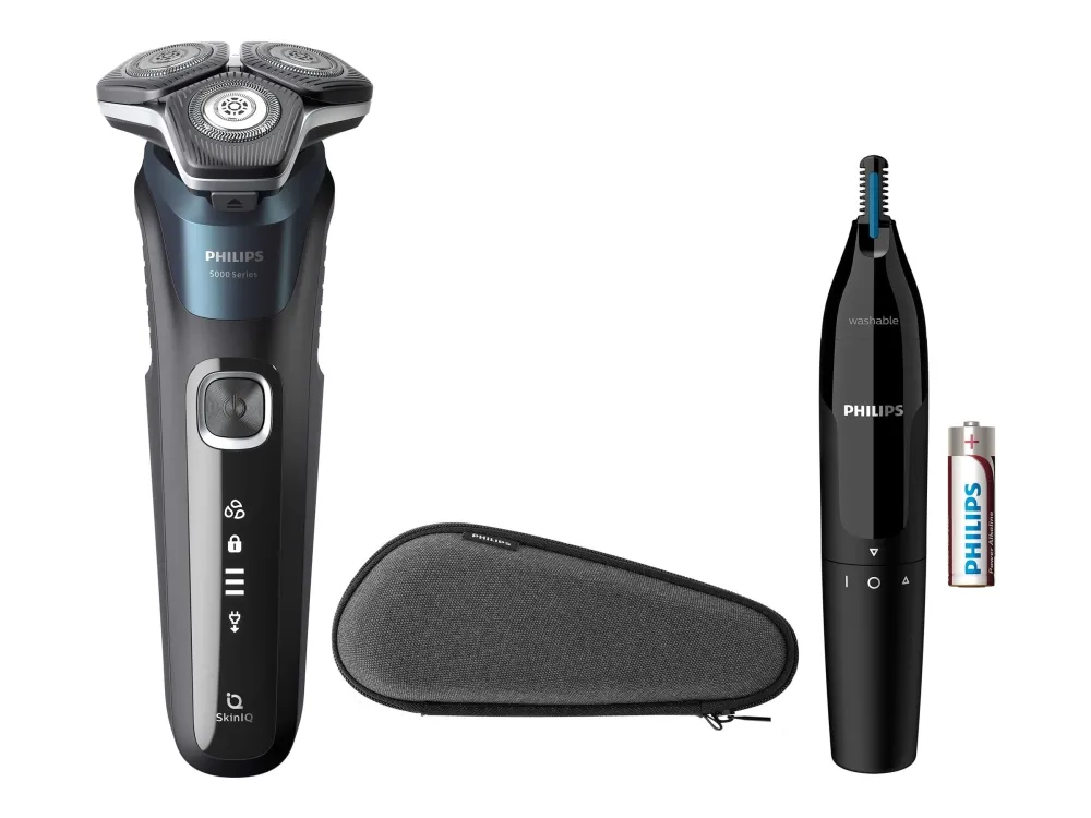 Discover the Philips 5000 Series S5889 shaver, designed for those who seek a high-quality grooming experience. This special edition shaver is fully washable, ensuring easy maintenance and optimal hygiene. It comes bundled with a Philips SmartClick precision trimmer, cleaning brush, travel case, and a USB-A cable, making it the perfect companion for both home and travel. The shaver is equipped with SkinIQ technology and SteelPrecision blades, adapting to your beard's density for an efficient and comfortable shave, whether dry or wet. With a cordless operation of 60 min and a quick charge feature, it's always ready when you are. The Philips 5000 Series S5889 is not just a shaver; it's a comprehensive grooming solution tailored for the modern man.