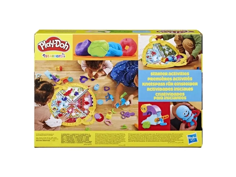Let kids imagine almost anywhere with the Play-Doh Fold and Go Playmat! It's a perfect Play-Doh starter kit with a portable play mat, 19 Play-Doh accessories, and 4 squishy, moldable colors. The colorful fabric mat inspires lots of creative activities with fun tools that stamp, cut, and shape Play-Doh compound in lots of different ways. While kids create and play pretend, they can also explore topics like social-emotional skills, creativity, and preschool themes like animals and weather. It's a great addition to your tactile sensory toys and makes a wonderfully creative gift for 3 year old girls and boys and up.Play-Doh Fold 'n Go Playmat. Product type: Children's craft kit, Recommended age (min): 3 yr(s), Art & craft parts included: Modelling clay, Modelling mold, Product colour: Multicolour. Package type: Closed box