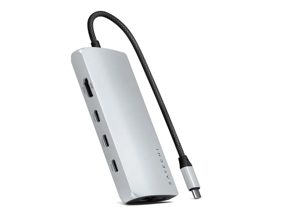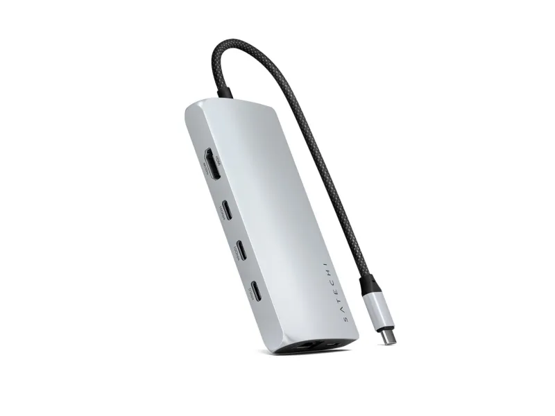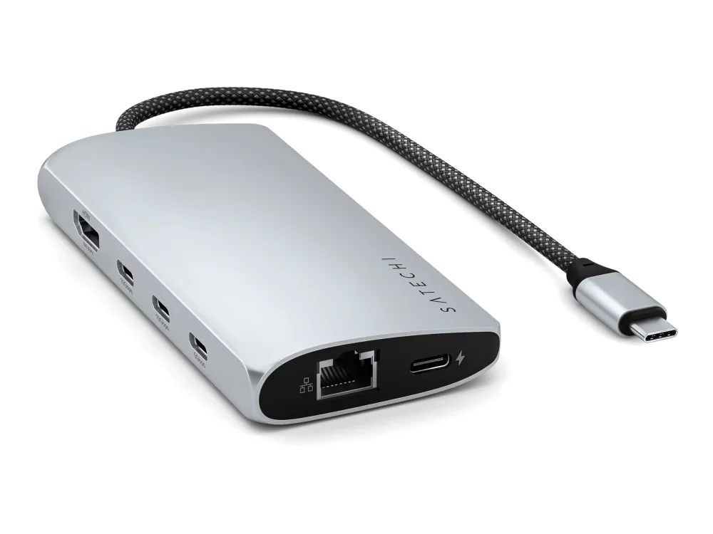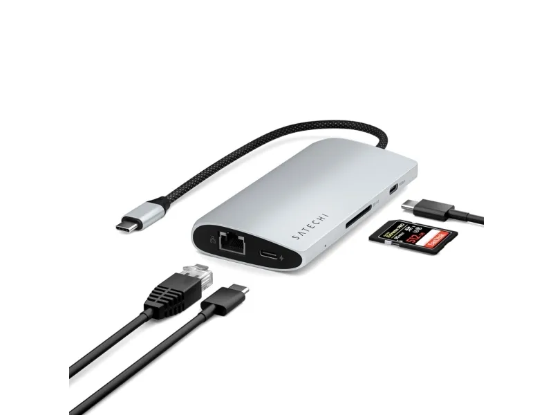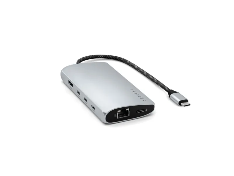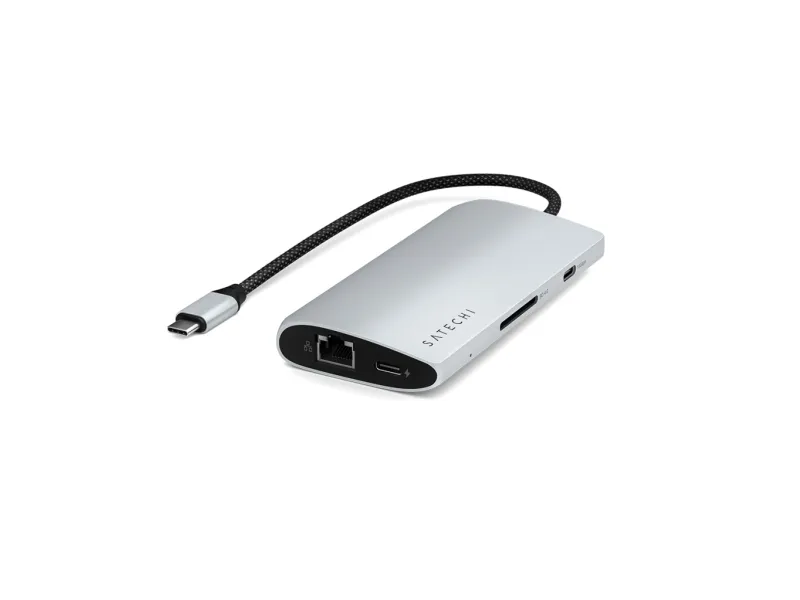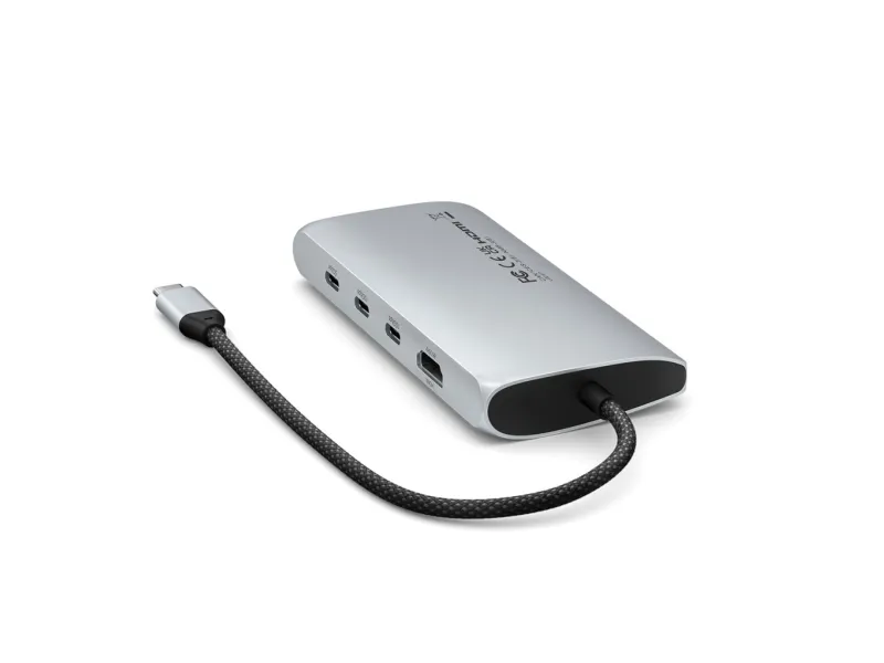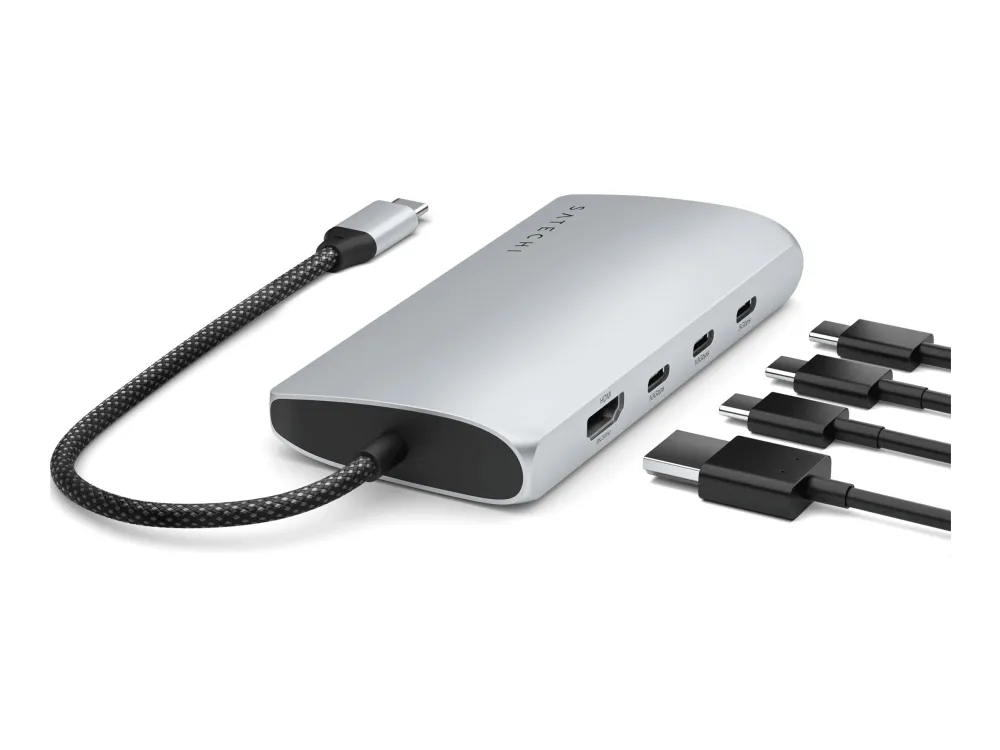 Satechi dokkingstasjon er designet for å forbedre arbeidsområdet ditt med omfattende tilkoblingsmuligheter og ytelsesfunksjoner. Den tilbyr sømløs tilkobling til flere enheter og skjermer via USB-C-, HDMI-, Thunderbolt 4- og USB4-portene, noe som gjør den til en passende løsning for profesjonelle som ønsker å maksimere produktiviteten. Med støtte for 8K-oppløsning med en oppdateringsfrekvens på 144 Hz leverer den eksepsjonell videokvalitet for redigering og strømming. Dokkingstasjonen har også USB 3.2 Gen 2- og Gen 1-porter for rask dataoverføring, et SD UHS-II-minnekortspor for effektiv håndtering av foto- og videofiler og en RJ-45-kontakt for stabile nettverkstilkoblinger. Aluminiumskabinettet gir ikke bare ekstra holdbarhet, men bidrar også til bedre varmespredning, noe som sikrer at enheten fungerer effektivt. I tillegg støtter USB-C-porten med Power Delivery (100 W) pass-through-lading, slik at du kan gi strøm til den bærbare datamaskinen og andre enheter uten at det går på bekostning av ytelsen. Enten du jobber hjemmefra eller på kontoret, er Satechi-dokkstasjonen et allsidig og pålitelig tillegg til det tekniske oppsettet ditt.