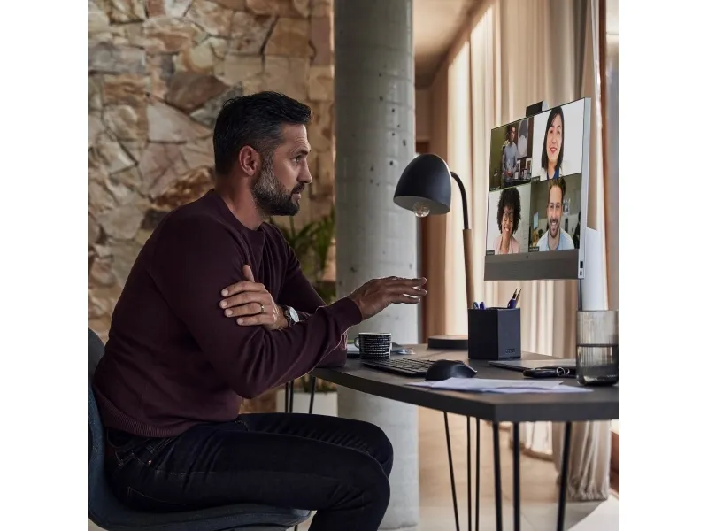 HP EliteOne 840 G9 er designet som en alt-i-ett-datamaskin som kombinerer eleganse med kraftig ytelse. Med en 23,8-tommers Full HD-skjerm med IPS-teknologi og antirefleks-egenskaper, kan brukerne nyte levende bilder og komfortabel visning fra ulike vinkler. Denne enheten er ENERGY STAR-sertifisert og er miljøvennlig. Inkluderingen av en Bang & Olufsen soundbar beriker lydopplevelsen, og gir klar og oppslukende lyd for musikk, filmer og videokonferanser.