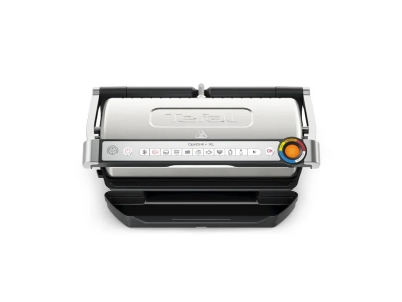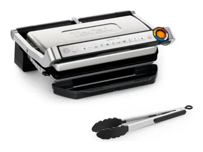 Tefal OptiGrill + XL GC728D10. Product colour: Black, Stainless steel, Form factor: Rectangular, Control type: Buttons. Power: 2000 W. Width: 445 mm, Depth: 365 mm, Height: 175 mm. Package width: 375 mm, Package depth: 481 mm, Package height: 229 mm. Packaging content: OptiGrill+ XL Intelligent Grill Kitchen tongs