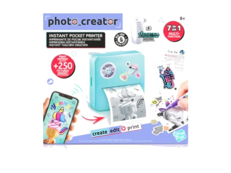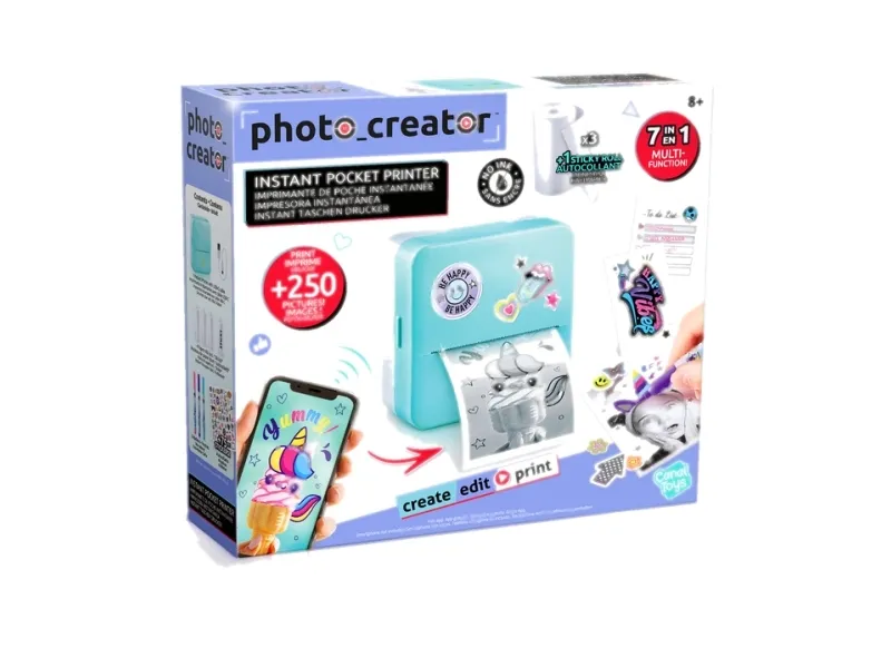 Denne trådløse Instant Pocket Printer fra Photo Creator er et must! Du kan skrive ut alt umiddelbart: bilder, tekster, etiketter, tegninger, to do lists, rammer og til og med generere nye bilder gjennom AI (Artificial Intelligence)-teknologi. Bare last ned gratisappen på mobilen din og koble til skriveren din via Bluetooth, og du er klar til å lage dine design og skrive ut umiddelbart!