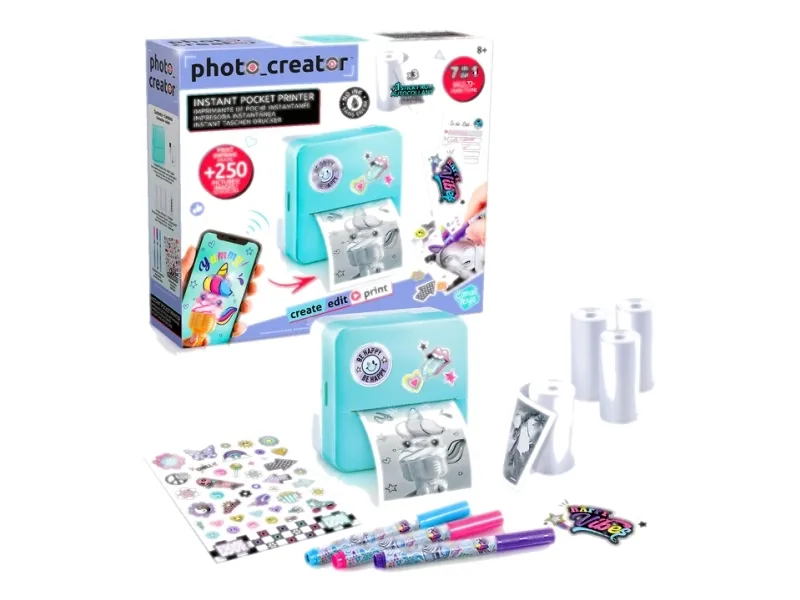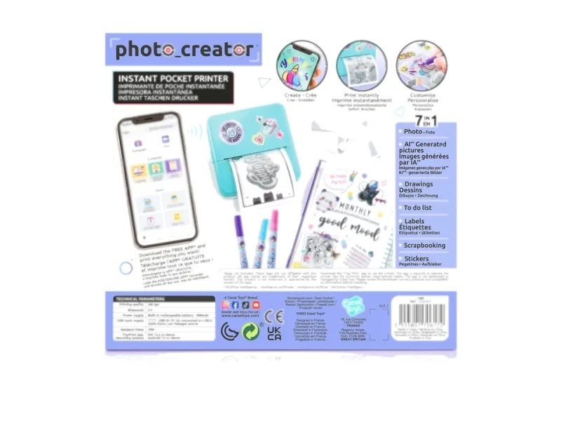 I appen kan du ta, redigere og transformere bilder, lage bilder med AI-generatoren og skrive ut direkte fra internett. Du kan også dekorere utskriftene dine med de medfølgende markørene og klistremerkene.