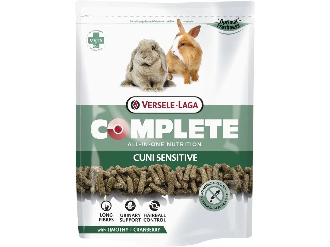 Versele-Laga Complete Kanin Sensitive är en spannmålsfri alternativ för äldre, mindre aktiva och känsliga kaniner. Det här 100% extruderade helfodret har en optimerad sammansättning med lägre energiinnehåll, särskilt anpassad för att bibehålla en hälsosam vikt hos kaninen. De speciellt utformade pelletsen har flera fördelar: de naturligt sliter ner kaninens framtänder, stödjer en balanserad tarmflora och friska urinvägar. Dessutom är fodret konstruerat för att reducera dålig lukt från avföringen och innehåller långa fibrer som gynnar en sund matsmältning.Se alltid till att din kanin har konstant tillgång till friskt vatten och hö av hög kvalitet. Med Versele-Laga Complete Kanin Sensitive ger du din äldre eller mindre aktiva kanin en näringsrik och skräddarsydd kost för att främja dess välbefinnande och hälsa. Beroende på kaninens storlek och ras rekommenderas en genomsnittlig daglig matdel på 40 till 70g.