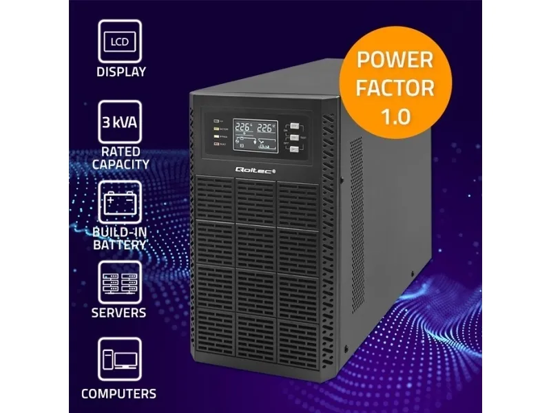 Qoltec - UPS - power factor 1.0, LCD, EPO, on-line - 3000 watt - 3000 VA