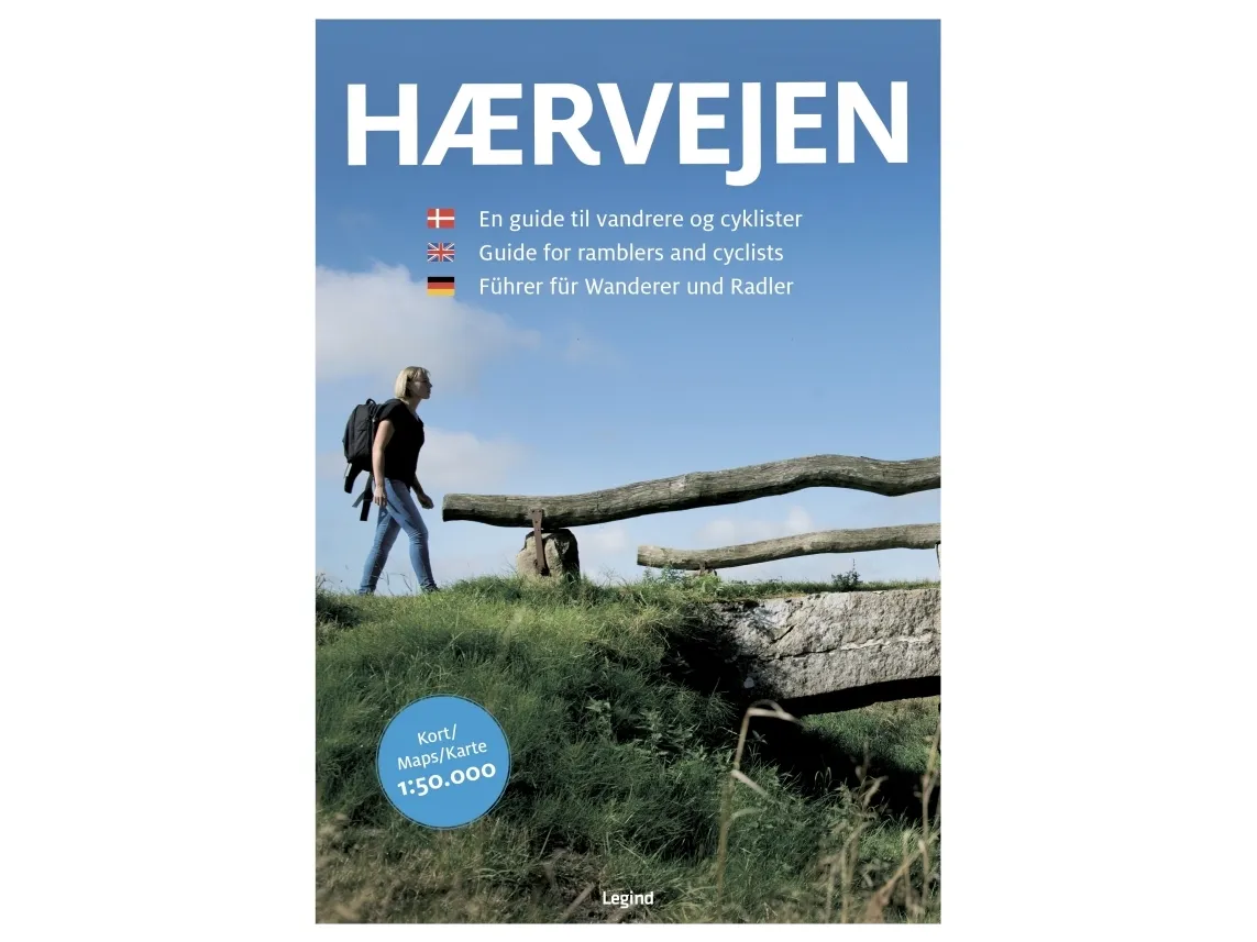 En guidebog til vandrere og cyklister – på dansk, engelsk og tysk Kortbaseret guidebog, der dækker den udvidede Hærvejs-rute fra Frederikshavn og Hirtshals i nord til Padborg i syd. Oversigtskort i målestoksforholdet 1:300.000 samt detaljerede vandrekort i målestoksforholdet 1:50.000. A map-based guide book to the Ancient Road from Frederikshavn and Hirtshals in the north to Padborg in the south. Overview map (scale 1:300,000) plus detailed hiking maps (scale 1:50,000) in Danish, German and English. Auf Karten basierender Führer, von Frederikshavn und Hirtshals bis nach Padborg. Übersichtskarte im Maßstab 1:300.000 sowie detaillierte Wanderkarten im Maßstab 1:50.000 auf Dänisch, Deutsch und Englisch. Guiden er støttet af EU og Ministeriet for By, Bolig og Landdistrikter, Region Syddanmark, Region Midtjylland, kommunerne i de to regioner, og udarbejdet i samarbejde med turistbureauer og kommuner i Region Nordjylland.